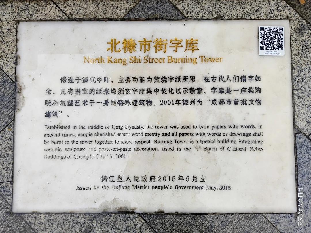 字库塔正门下方在一块汉白玉上镌刻着“北糠市街字库塔的简介”。一座小小的字库塔,展现的是中国人对文化的敬畏之心。因地处太古里漫广场,与周边的环境有机融合,是很多人打卡拍照的圣地。