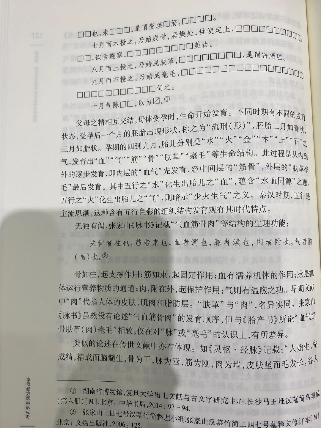 ②血:《脉书》云“血者濡也”意思是血有濡润、濡养机体的作用。血如水,以清为要。血如气,以通利为顺,瘀则成病(瘀血是秦汉时期常见病症之一)