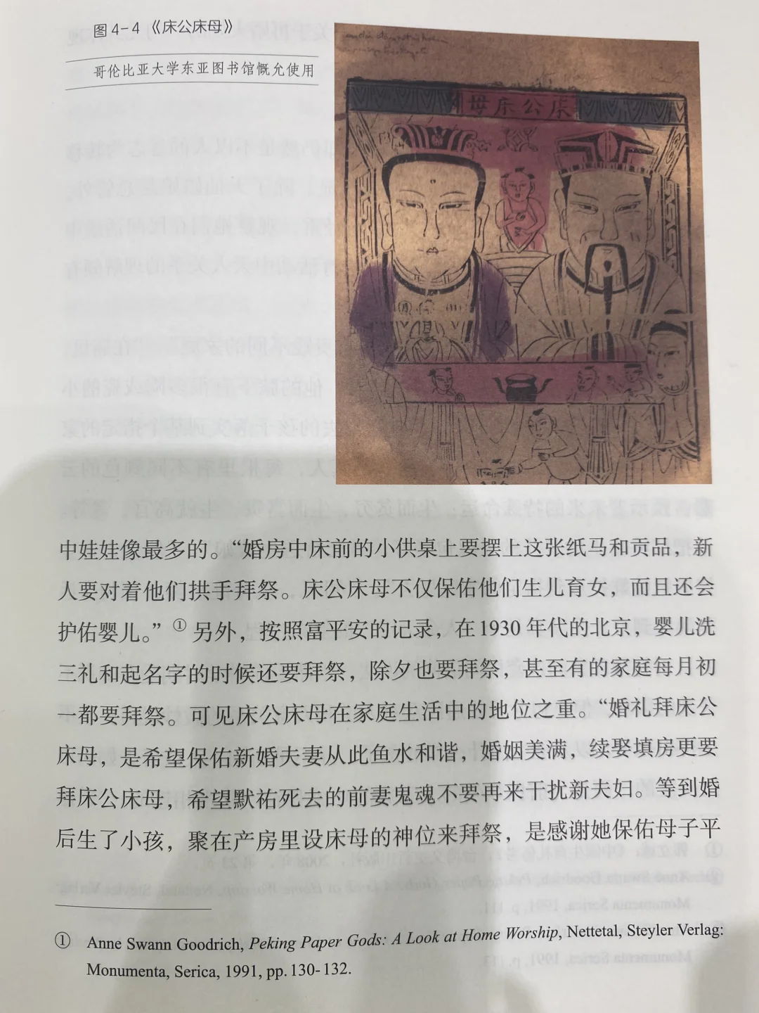 《床公床母》:婚房中床前小供桌摆上纸马和贡品,新人对其拱手拜祭会保佑夫妇生儿育女、庇佑婴儿、夫妻情感