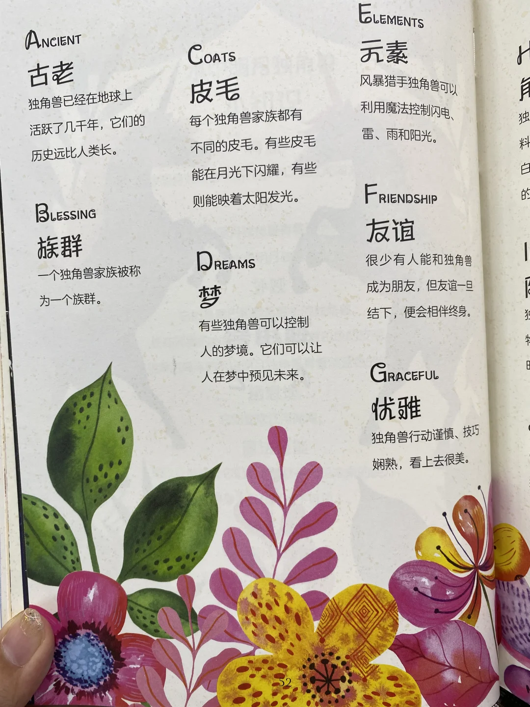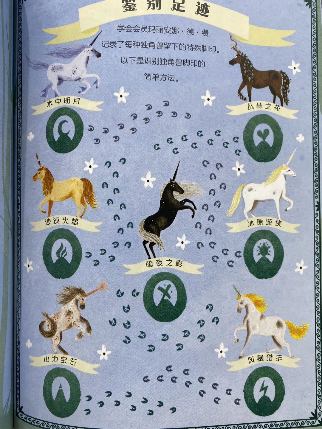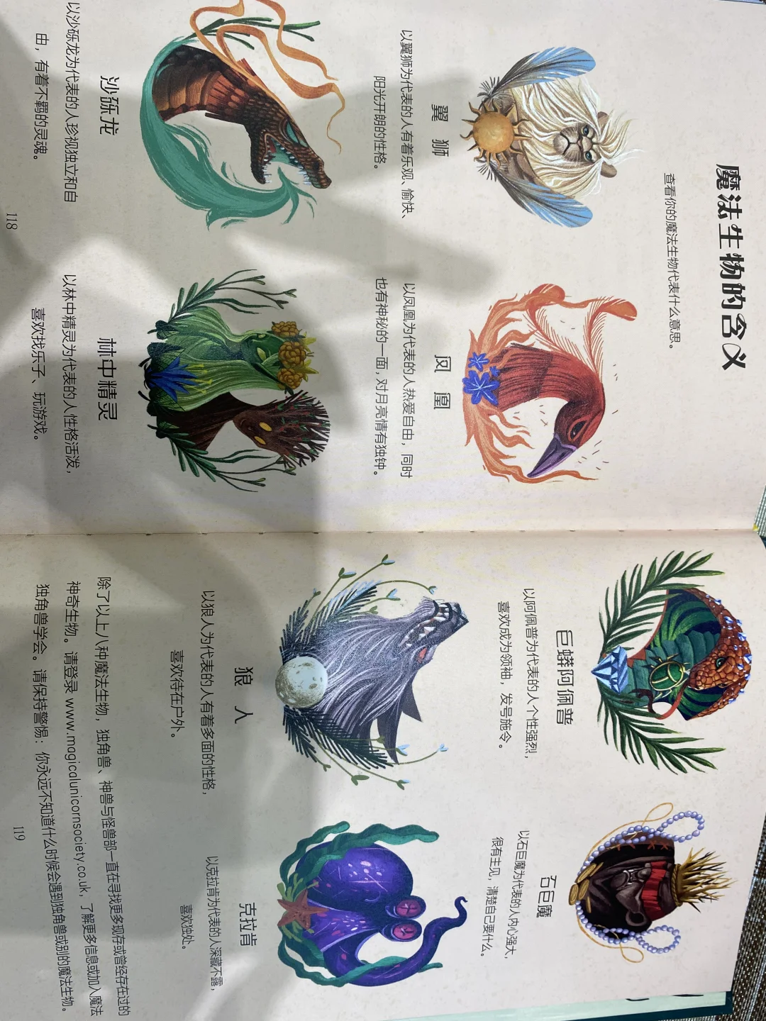 它的角弯曲而成螺旋状,质地类似鹿角,鬃毛和尾巴里长着花朵,有治愈效果,可以影响天气。生活在原始森林深处,会心灵感应