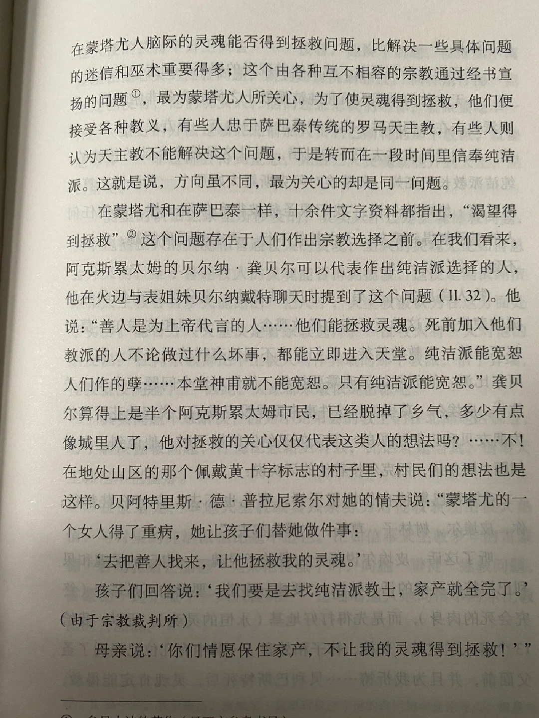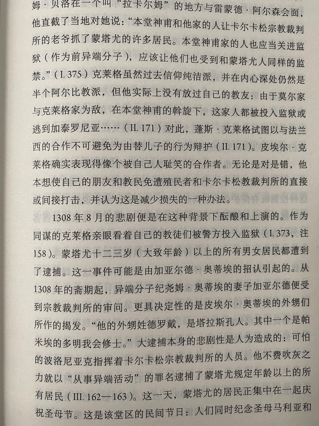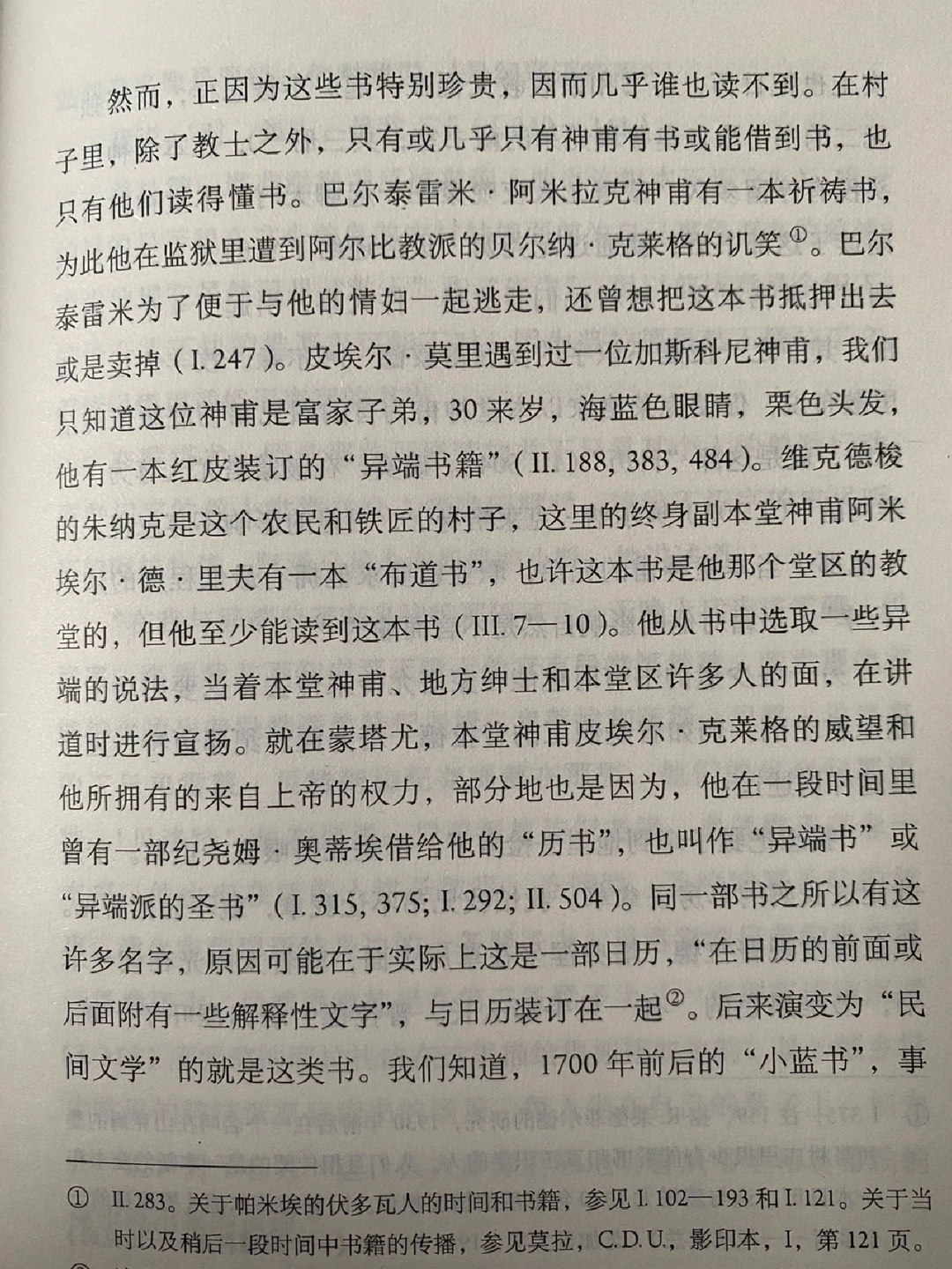 本书的第一手材料来自1320年代宗教裁判所的审判异端记录。当时蒙塔尤村大多数村民信奉一个名为“清洁派”的小教派,这个教派在当时被视为异端,由于信仰偏离正统天主教,故导致了这个村几乎被宗教裁判所一锅端.....而主持这场宗教裁判的雅克·富尼埃主教,日后成为了教皇伯努瓦十二世。作者通过各种材料还原了当时一个村落的整体形象与生活日常