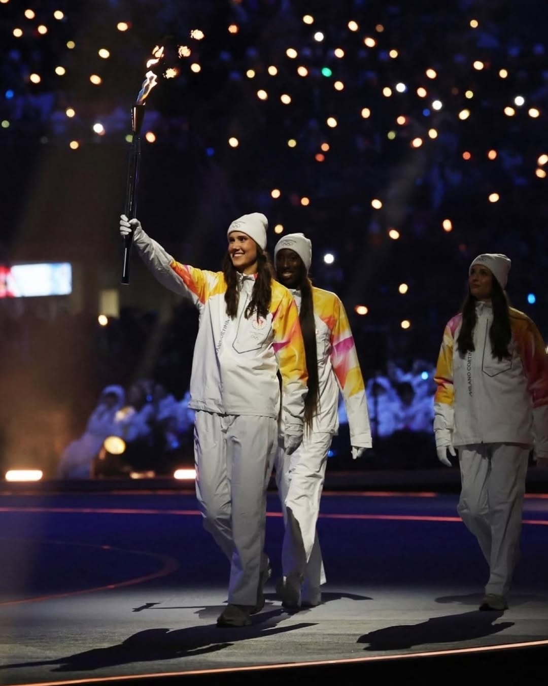 米兰冬奥会开幕式上的排球元素,意大利男女排队员参与场内火炬传递❤️🔥🏐