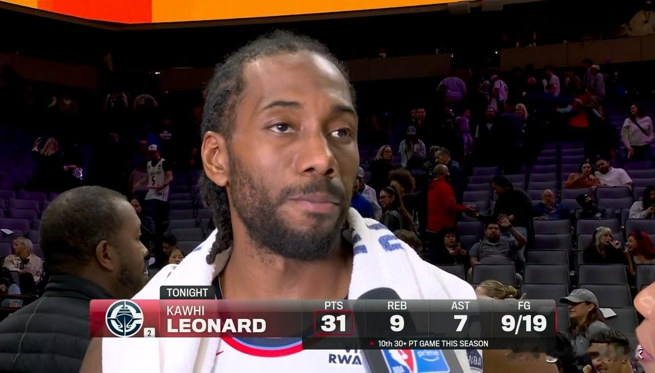 快船巨星伦纳德终于证明了自己的带队能力!在今天快船客场以114:111险胜国王的比赛中,伦纳德用自己的出色表现向所有人证明了自己的带队能力,在哈登和祖巴茨离队之后,伦纳德依然能够带领球队赢球。 全场比赛下来,伦纳德首发出战35分钟,投篮19中9,其中三分球5中1、罚球12中12爆砍31分9篮板7助攻2抢断,他的场上正负值为+19。 事实证明,只要伦纳德留在快船,快船就是一支强队。