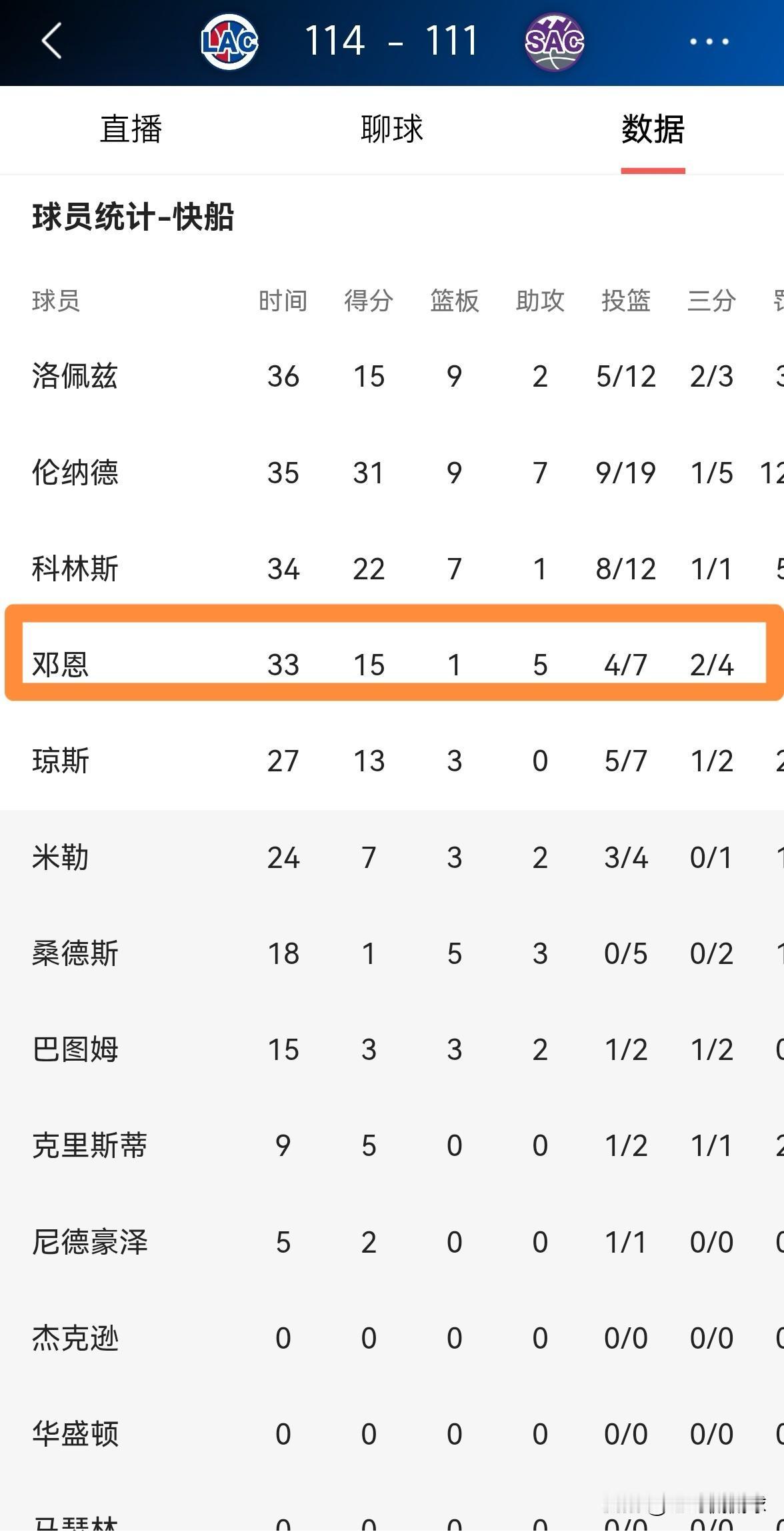 快船大将邓恩的打球方式越来越合理了!在今天快船客场以114:111战胜国王的比赛中,邓恩首发出战33分钟,投篮7中4,其中三分球4中2、罚球7中5得到15分5助攻,他的场上正负值为全队并列最高的+21。 值得注意的是,在哈登离队、新援加兰仍然养伤的情况下,出任球队首发控卫的邓恩在打球方式方面变得更加合理了,他在投篮和传球方面都做出了非常正确的选择。