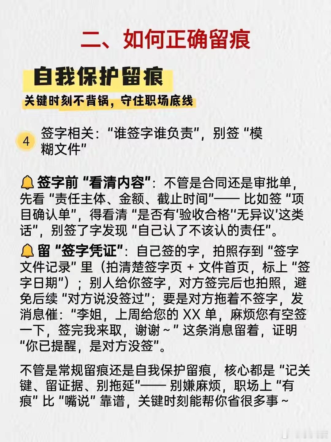 工作留痕真的能保命职场里多留个心眼总没错,聊天记录别清、工作对接留凭证、任务确认要回执,不是不信任谁,只是凡事有迹可循,能避开无端的锅,也能守住该有的分寸,看似麻烦的细节,实则是最稳妥的保护。