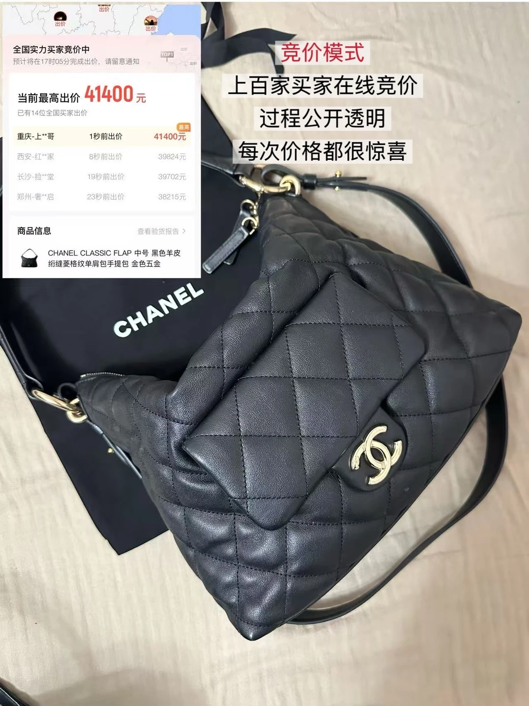 在这之前我没有见过出包包是可以通过竞拍决定价格的