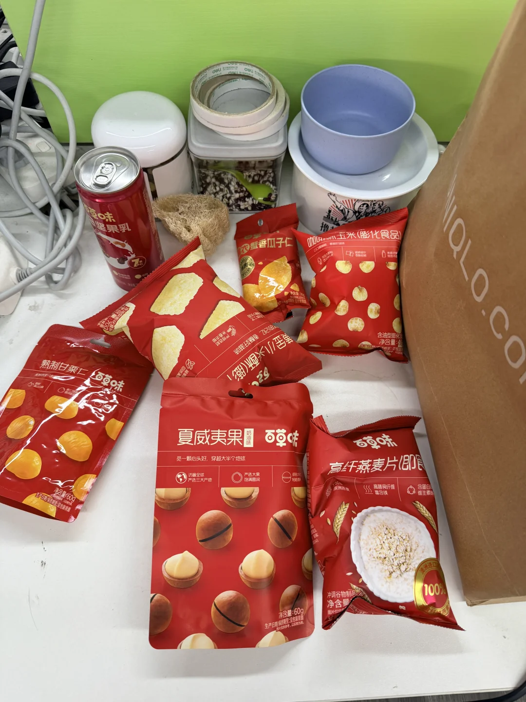 我觉得金龙鱼包装不好看,我就拆了包装 这样拿轻松一点过地铁安检的时候,工作人员说有水要检测,我就把小瓶油拿他,顿时我就自卑了哈哈哈 那个油真的很迷你 看到地铁其他人年货比较好一点 还送了一箱百草味的东西 我觉得看着一般 拆开包装留在公司了