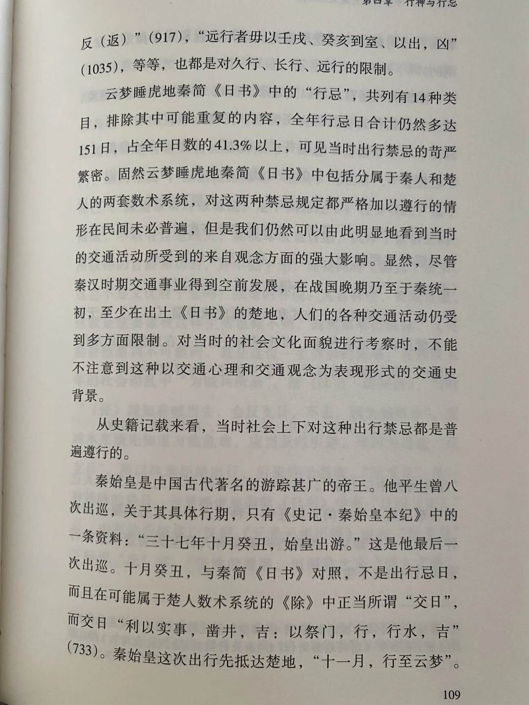 古代社会人们都通过《日书》中的行忌来趋利避害。书中按距离与出行性质分别介绍,日书出行仪式为后世道教所吸纳继承,成为其仪式重要组成部分