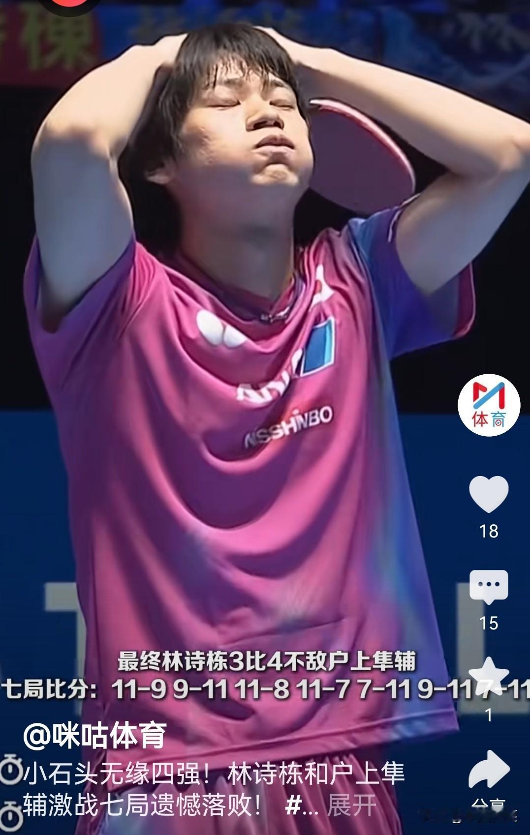 林诗栋惨遭户上隼辅逆转后,两人脸上都露出了不可思议的表情。