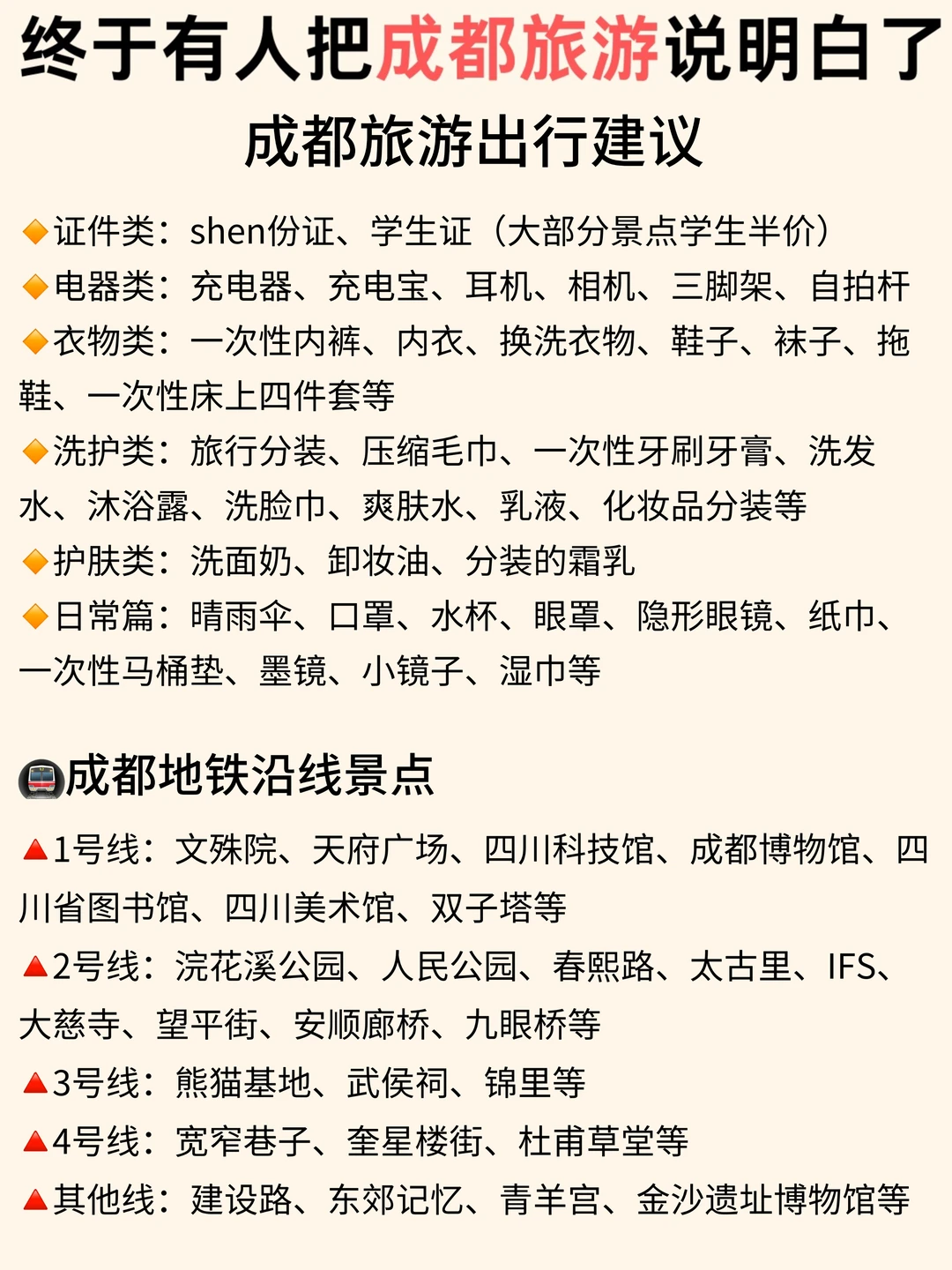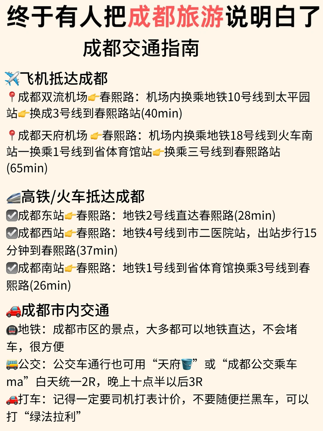 🔺不要自驾游,成都乘坐地铁就可以到大部分景点,特别方便