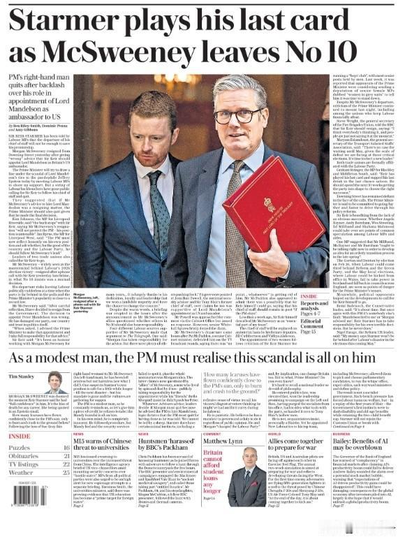 受性罪犯爱泼斯坦案影响,英首相幕僚长摩根·麦克斯威尼辞职 洲哥讲时事 当地时间2026年2月8日,围绕性犯罪者杰弗里·爱泼斯坦于2019年去世引发全世界的政治动荡目前在英国日益加剧。 英国总理斯塔默的 幕僚长摩根·麦克斯威尼在2024年被任命为英国驻美国大使后,与爱泼斯坦的关系匪浅。 现在随着爱泼斯坦案的公开及爆发,英国警方正在调查曼德尔森再美期间是否向爱泼斯坦泄露了国家机密。 受此影响,英国首相斯塔默对任命彼得·曼德尔森为首相幕僚长深刻反省:被任命为该职位是错误的,损害了我们的党、我们的国家和我们对政治的信任,我对此负全部责任。 尽管斯塔默试图为麦克斯威尼辩护,但其所在工党坚决要求麦克斯威尼辞职,2月8日,麦克斯威尼被迫辞职。 斯塔默正处于他18个月任期内最严重的危机中。麦克斯威尼的辞职似乎还不够,尤其是对反对派来说,反对派呼吁首相斯塔默应该辞职。 国际新闻实时报道:敬请关注今日头条号《智慧转身》 俄乌战争战场剖析:敬请关注抖音《洲哥讲时事》视频更精彩。 中国传统文化弘扬与传播,敬请关注《洲瑜国学讲堂》