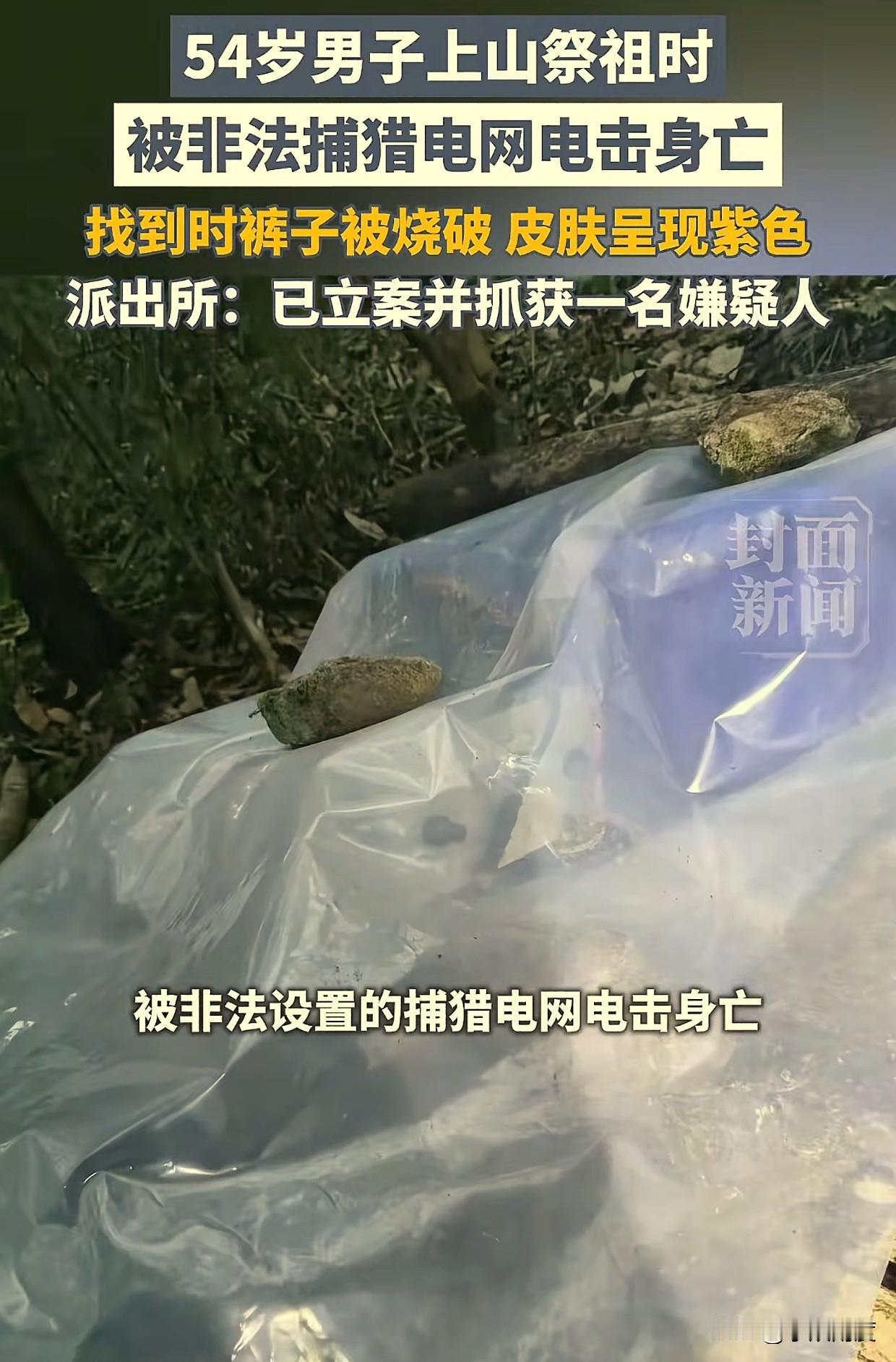 可悲呀!重庆市巫山县一名54岁的男子,在上山祭祖返回的路上,不幸被同村村民非法设置的捕猎电网击中,最终没能保住性命。可能很多人不知道,这名男子是家里实实在在的顶梁柱,上有需要赡养的老人,下有尚未完全独立的子女。他这一倒,整个家就像塌了半边天,往后的日子该怎么过,想想都让人揪心。 2月8日,红星新闻率先报道了这起让人痛心的悲剧,事发地点在重庆市巫山县抱龙镇桃花村,出事的时间是2月6日。截至报道当天,非法设置捕猎电网的犯罪嫌疑人已经被警方抓获,算是给死者家属和关注此事的人一个初步的交代。不过让人没想到的是,这起看似偶然的悲剧,背后却藏着不少让人疑惑的地方,就连当地村干部,也是在嫌疑人被抓后才知道有这么一档子事。 事情的经过其实不算复杂,当天这名54岁的村民,和往常一样,出门前特意跟家里人说了一声,说自己要上山祭祖,办完事后就回来。家里人也没多想,毕竟上山祭祖是当地的习俗,这么多年来一直都是这样。谁也不会料到,这一次简单的告别,竟然会变成永别。 他上山后一切都很顺利,祭祖的流程很快就走完了,到了傍晚的时候,天渐渐暗了下来。他就给家里人打了个电话,说自己已经完事了,让家里人过来接他一下。家里人接到电话后,立马就收拾好准备出门去接他,可让人奇怪的是,就在挂了电话没多久,再给她打电话的时候,电话就已经无人接听了。 一开始家里人还以为是山上信号不好,没太在意,想着再等一会儿,说不定他自己就下来了。可一等再等,始终没等到他的身影,天色越来越暗,山上也越来越冷。家里人心里的不安感越来越强烈,一种不好的预感涌上心头。 实在等不下去了,家里人就赶紧召集了几个亲戚邻里,一起上山去找他。山上的路不好走,加上天色已黑,视线很差,几个人拿着手电筒,一边喊着他的名字,一边小心翼翼地在山路上摸索。心里只有一个念头,就是希望他能平平安安的。 可命运就是这么残酷,在一处不算偏僻的路边,他们找到了他。只是此时的他,已经倒在了地上,没了任何气息,全身的皮肤都变成了紫色,裤子的膝盖处被烧焦了一个洞。看着就让人揪心。 后来家人才知道,击中他的是一个非法设置的捕猎电网,就藏在山路旁边,布置得十分隐蔽,没有任何警示标志,不仔细看根本发现不了。现场还找到了一个蓝色的盒子,里面装着高压电瓶,上面盖着一层塑料薄膜。据了解,这个电瓶的电压高达上万伏,只要稍微触碰一下,就足以让人丧命。 更让人唏嘘的是,这名村民其实不是土生土长的桃花村人,是后来从别的村子搬过来的。在村里为人老实本分,和邻里相处得都很好,从来没和谁结过怨。谁也想不通,他为什么会遭遇这样的不幸。 当地村干部在接受采访时说,他们村子附近的山上,野猪比较多,以前也有村民偷偷用电网捕猎野猪,补贴家用。只是一直没发生过这样严重的事故,所以也没太重视。他还说,事发当天,他根本不知道有人在山上设置了电网,直到2月7日,警方把嫌疑人抓获后,通知了村里,他才得知这起悲剧。 而据死者家属透露,涉嫌设置电网的嫌疑人姓黄,今年40岁左右,还有犯罪前科。事发后,嫌疑人的亲属曾上门和他们协商,承诺支付5万元的安葬费。可到最后,这笔钱也没能兑现。 目前,犯罪嫌疑人已经被警方依法刑事拘留,案件还在进一步侦办中。警方也已经联合相关部门,对案发地周边的山林进行了全面排查,目的就是清除其他可能存在的非法捕猎装置,消除安全隐患。避免类似的悲剧再次发生。 另外,有律师表示,嫌疑人私设电网,未设置警示标志,导致他人死亡,属于重大过失,可能会被追究刑事责任。而死者家属,也可以通过法律途径,向嫌疑人索赔死亡赔偿金、丧葬费等相关费用。这起悲剧的发生,不仅让一个家庭彻底破碎,也给所有人敲响了警钟。 很多人可能觉得,私设电网捕猎只是小事,既能捕捉到野生动物,又能补贴家用。却忽略了这种行为背后的巨大危险,它不仅会伤害到无辜的人,还会破坏生态平衡。更是一种违法行为。 只是让人不解的是,这种非法捕猎的行为,在当地并不是个例,为什么一直没能得到彻底制止?现在,嫌疑人已经被抓获,可死去的人再也回不来了。那个原本完整的家庭,也因为这起悲剧,陷入了无尽的悲痛之中。 有人说,嫌疑人只是为了捕猎野猪,没想到会误伤人命,或许有可原谅之处。也有人说,私设高压电网本身就是违法行为,无视他人生命安全,就应该受到严厉的惩罚。 不知道大家怎么看这件事?你觉得私设捕猎电网应该被严厉禁止吗?嫌疑人应该承担怎样的责任?欢迎在评论区说出你的观点。