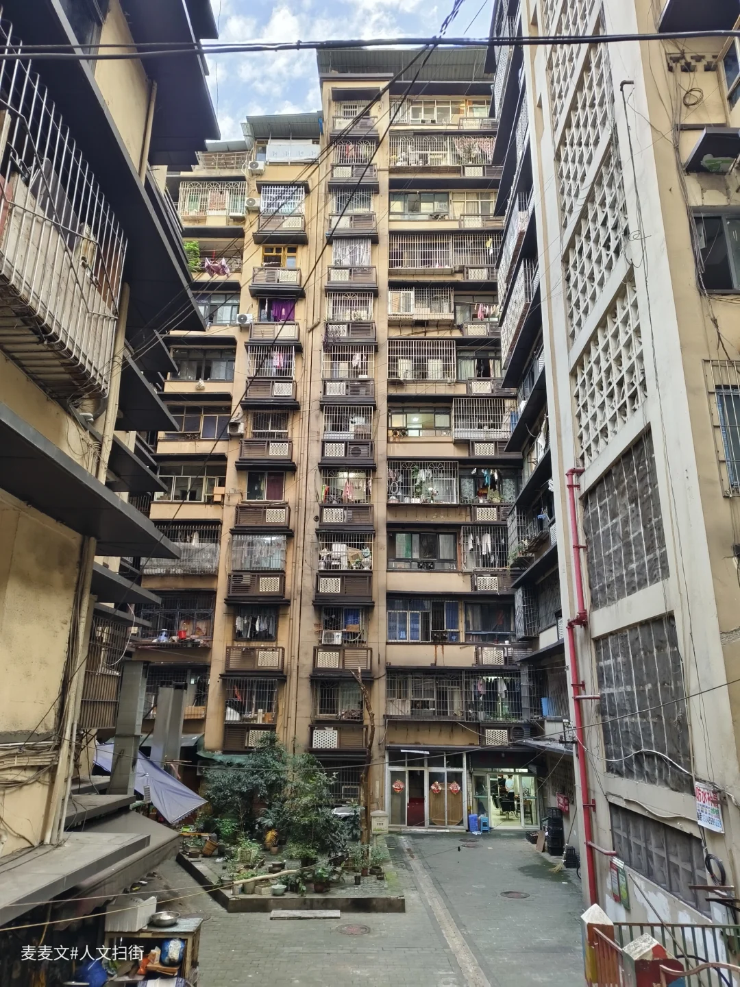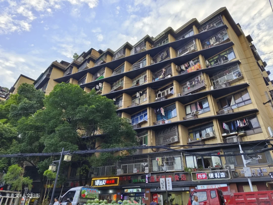 这里最引人注目的,当属那栋独特的老建筑。它外观朴实,黄色的墙体虽然是后来刷上去的,但仍带着岁月的痕迹。错落的阳台仿佛是生活的舞台,晾晒的衣物随风摆动,诉说着居民们的日常。底层商铺林立,杂货店、小餐馆等一字排开,弥漫着浓郁的生活气息。