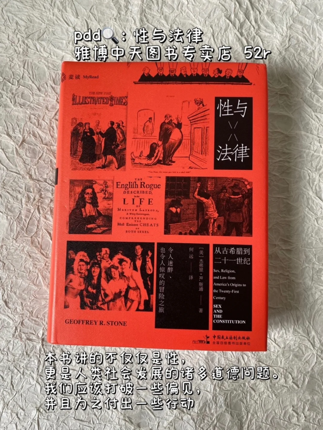 本书以古代性观念、性风俗为起点,又从美国建国之初的立宪理念,讲到 19—21世纪美国性道德和性 观念的演化,再到美 国 最高法院在格列斯伍德诉康涅狄格州案(避 孕)、罗伊诉韦德案(堕胎)、奥贝格费尔诉侯吉斯案(同性婚姻)等一系列涉性判决中扣人心弦的观点以及判决背后生动的时代背景,史诗般地讲述了「性」与「法律」相互碰撞的精彩历程
