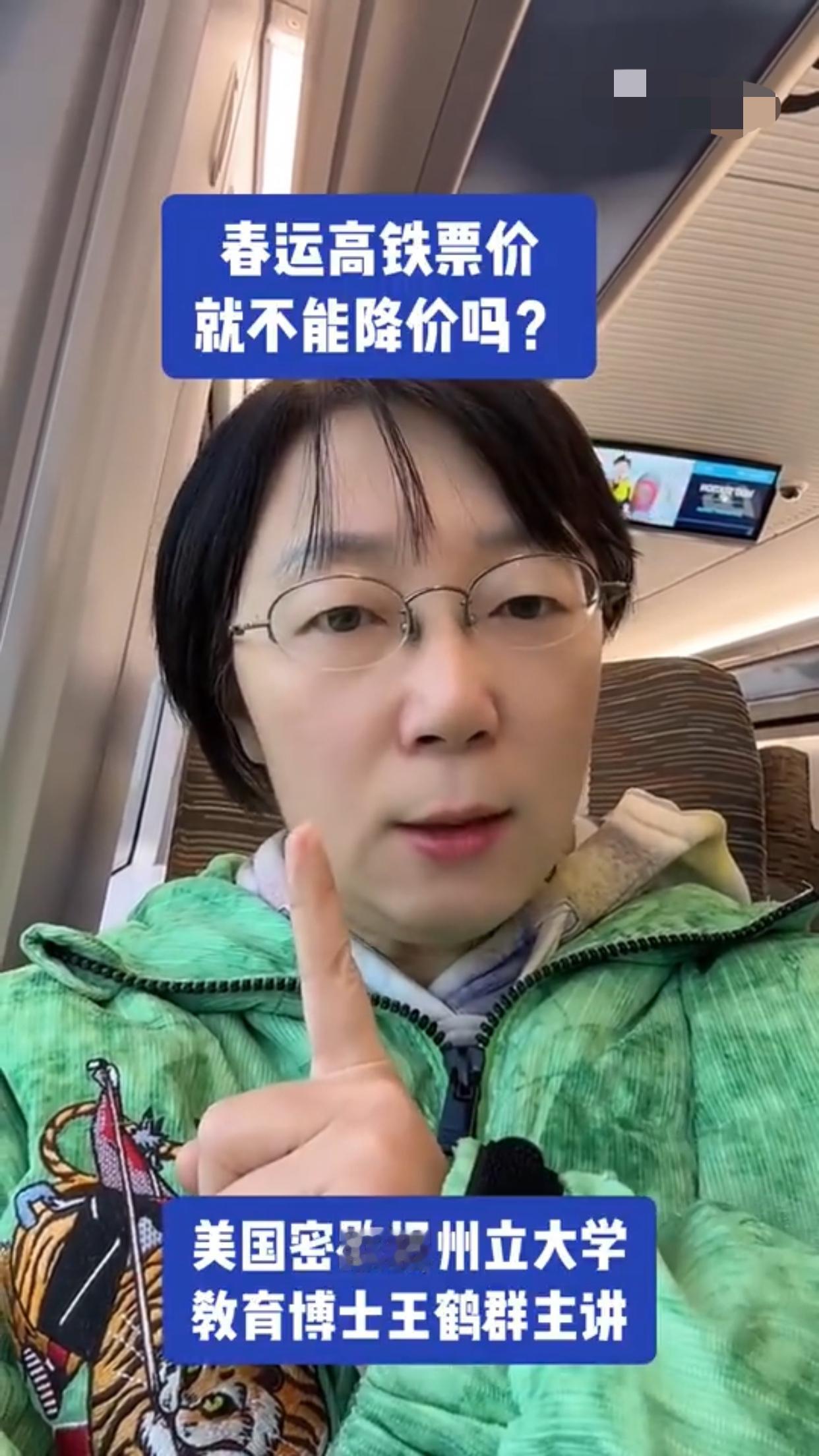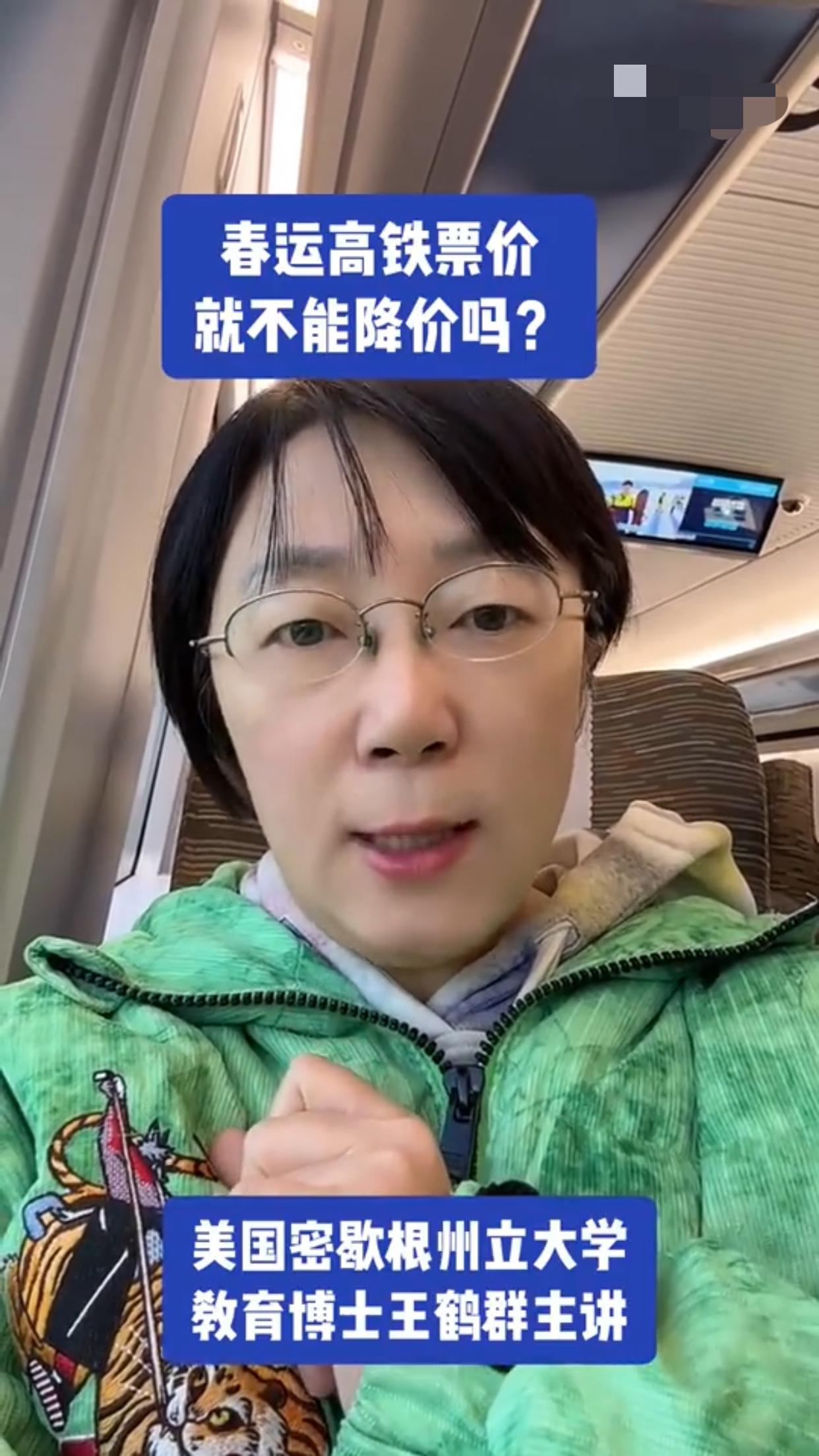 美国大学教育博士开始关心起中国人民来了,她认为高铁票价应该在春运期间降价,以给劳