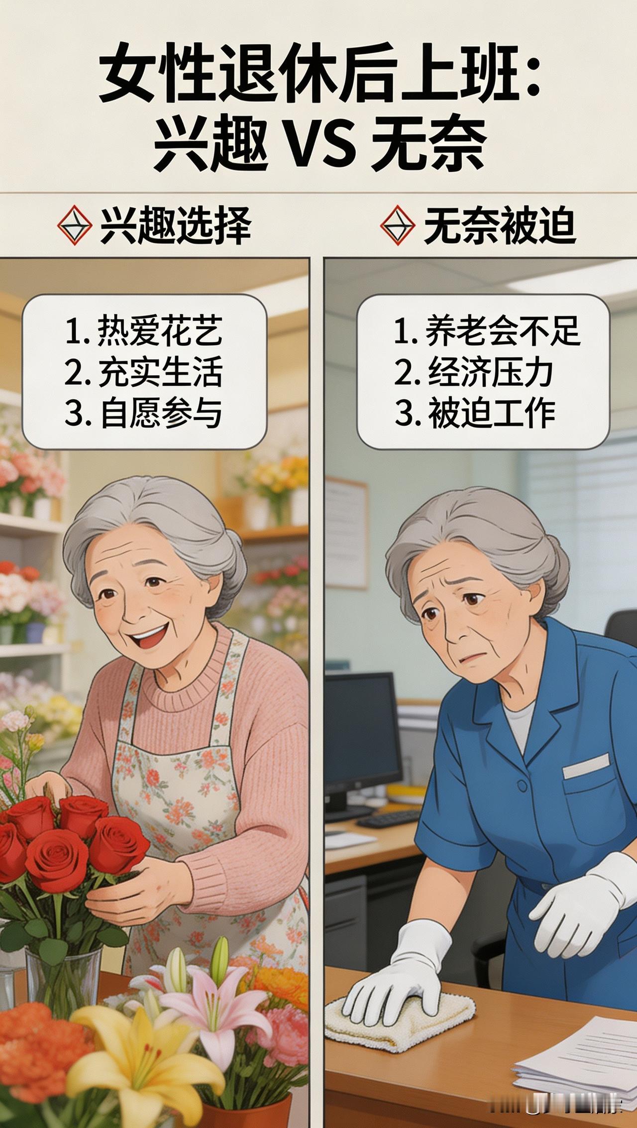 退休后还在上班的人,戳破了最扎心的现实 前几天刷到一个话题:为什么退休后还在工作的,大多是企业职工,尤其是女性? 底下的评论,像一把刀,把生活的真相划得明明白白。 有人说:“我家一长辈饭桌上感慨,退休后还工作的,生的都是儿子;不干活的,生的都是女儿。” 一句玩笑,藏着多少父母为子女扛下的重担。 有人晒出前同事:退休金8000+,55岁退休后还一直上班,63岁领着1万多高薪,她说哪怕扫地也要动起来。这是人间清醒,也是少数人的幸运。 可更多的声音,是无奈的叹息: “企业工人干最累的活,拿最低的退休金,太不公平。” “农民最辛苦,农保就那么几个钱,连看病都紧巴巴。” “退休后再工作的,哪是为了兴趣?大多是钱不够用。” 一千多的退休金,在物价飞涨的今天,连基本生活都捉襟见肘。50岁的年纪,上有老下有小,担子没卸,只能再次走进职场,用汗水换一份踏实。 而另一边,不少机关事业单位的同龄人,拿着充足的养老金,安心享受着含饴弄孙、游山玩水的退休生活。 有人说,这是因为“交得多,拿得多”,像买保险一样。可现实是,有些人的“保险”,是一辈子的汗水;有些人的“保障”,是与生俱来的轨道。 更讽刺的是,还有人在评论区阴阳怪气:“人民公仆辛苦点正常”“老百姓年轻时享福,老了就该再就业回报公仆”。 这种话,听着就让人寒心。 退休,本应是人生的避风港,可对有些人来说,只是换了一个战场。 他们不是不想歇,是不敢歇;不是不想躺平,是躺不起。 每一个在退休后依然奔波的人,都在用力地活着。 他们或许卑微,或许疲惫,但他们的脊梁,从未弯下。 这不是谁的错,只是生活最真实的模样。 你身边,有没有这样让人心疼的长辈?  退休现状