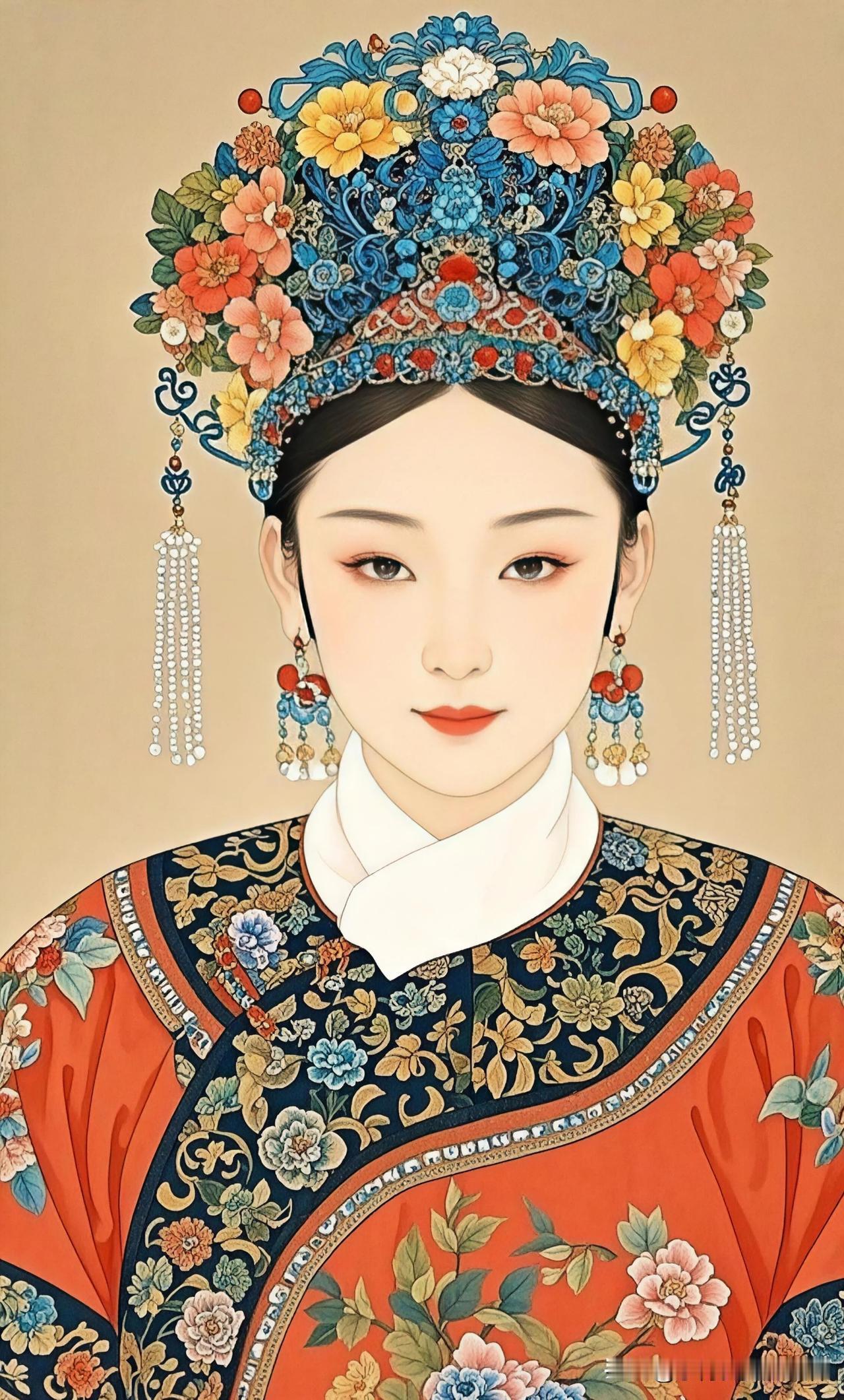 花冠映日,玉颜如画。