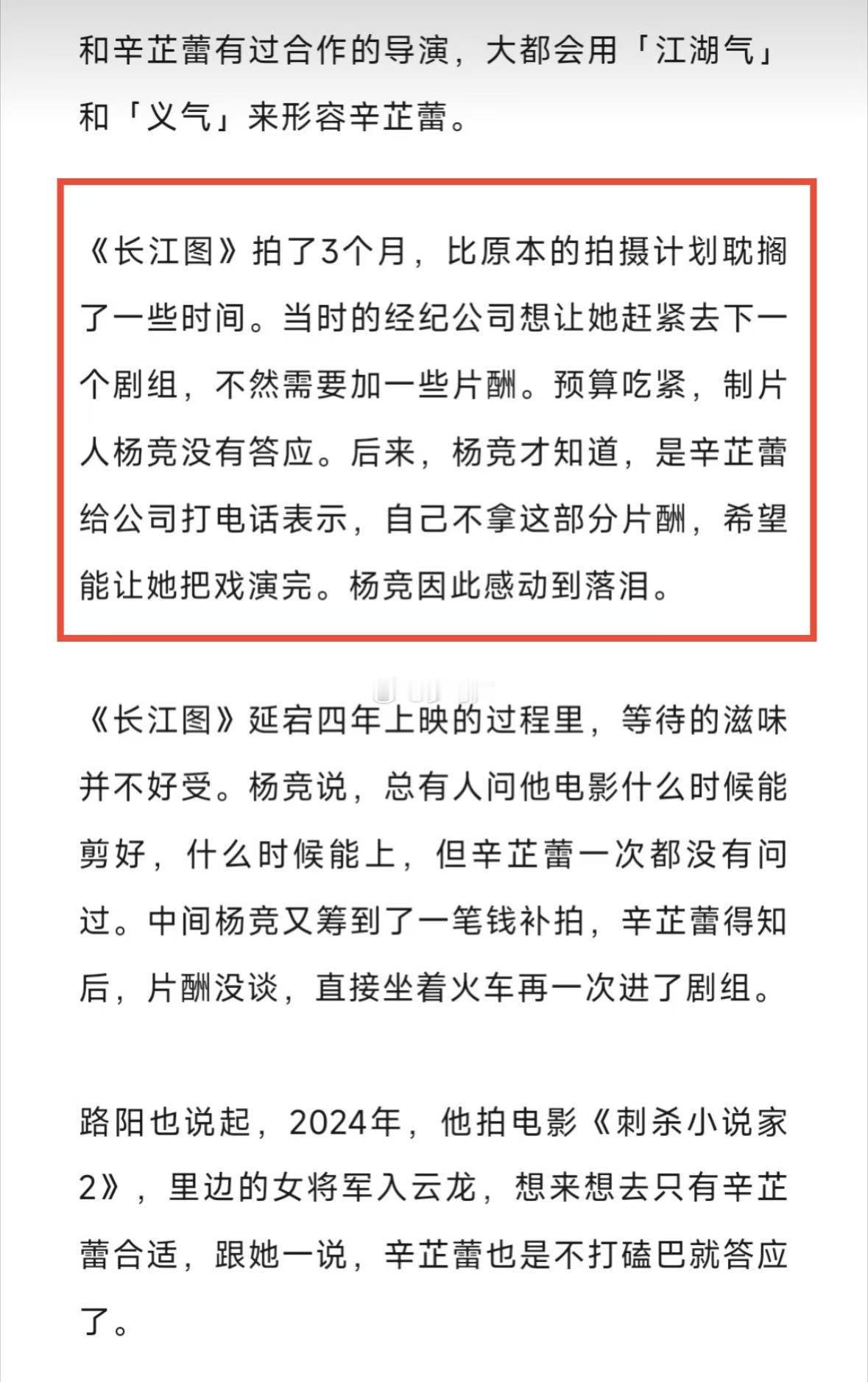辛芷蕾不分片酬也要把长江图演完 当年《长江图》预算吃紧,公司要加钱否则换人,辛芷蕾却主动放弃片酬坚持拍完。好演员的品格,从多年前就注定了!