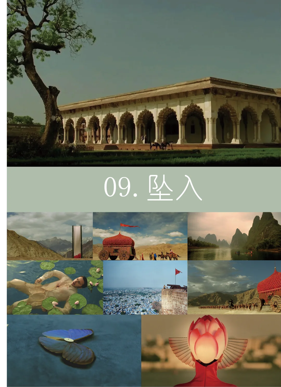 10.《坠入》(2006)豆瓣8.8分:受伤特技演员通过讲故事与小女孩相连,现实与幻想交织,实景拍摄构建幻想世界,对称构图与大胆配色彰显视觉质感。