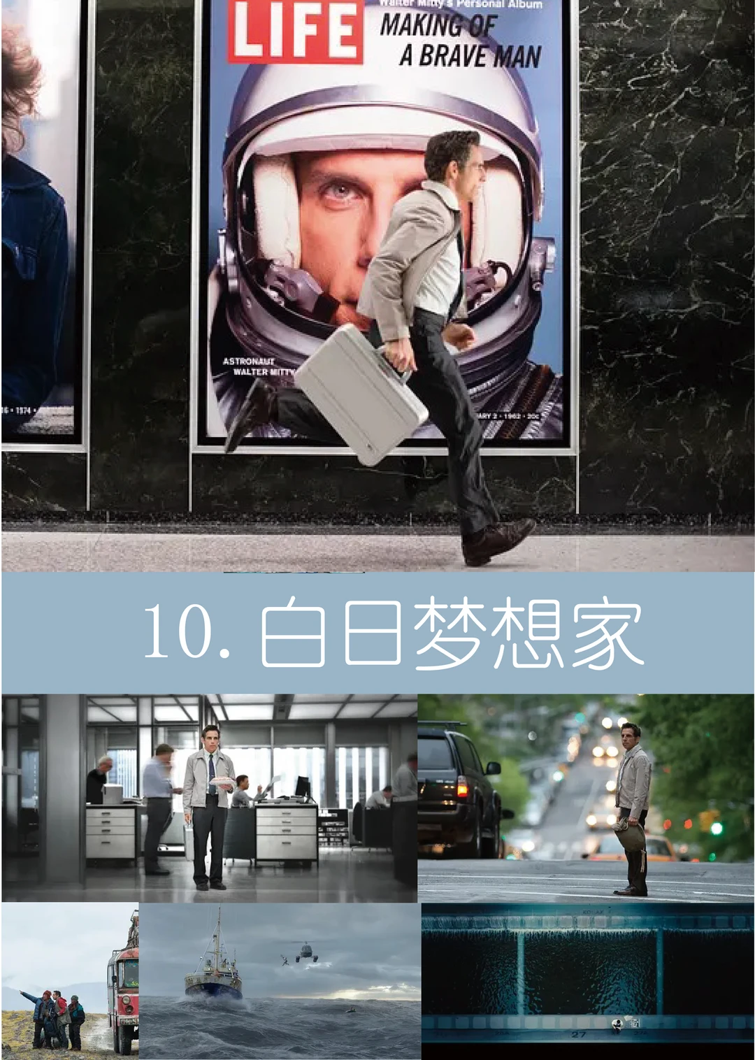 2.《白日梦想家》(2013)豆瓣8.5分:内向底片管理员为寻遗失照片踏上真实旅程,冰岛实景搭配自然光拍摄,画面简洁开阔,提醒初学者好画面源于对现实的耐心观察。