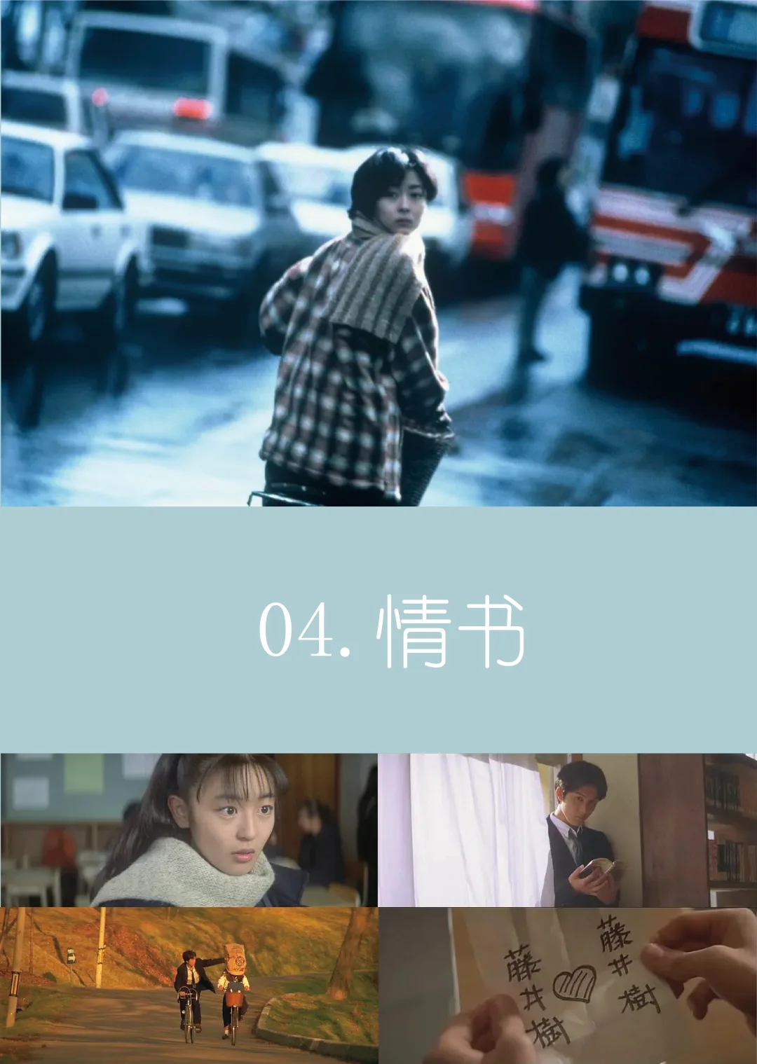 3.《情书》(1995)豆瓣8.9分:以寄错的信为开端,在北海道雪景中展开暗恋与告别,冷色调、胶片质感与留白,让情绪自然流淌,教会我们用环境光影承载人物心绪。