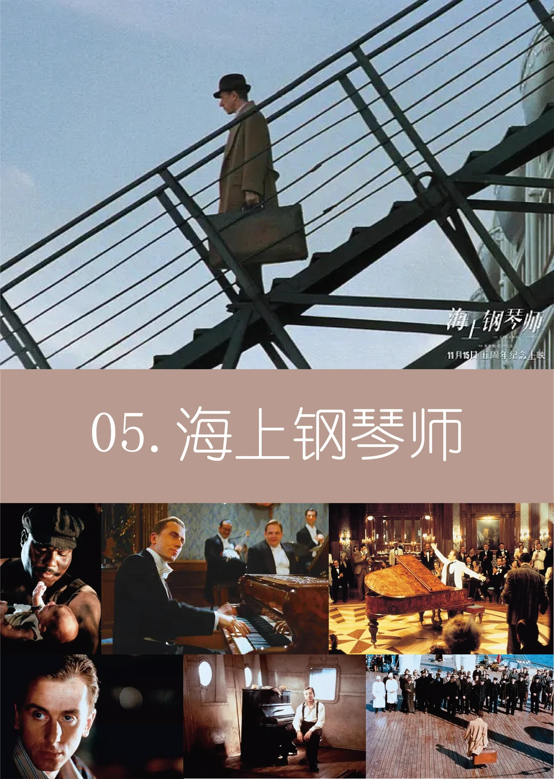7.《海上钢琴师》(1998)豆瓣9.3分:邮轮上的钢琴天才“1900”终身未踏陆地,以邮轮与大海隐喻秩序与自由,中远景构图与温和光影,将孤独与纯粹化为视觉诗意。