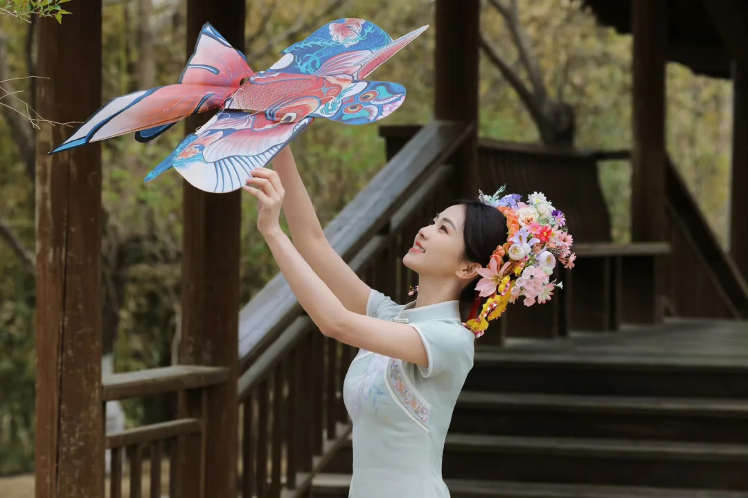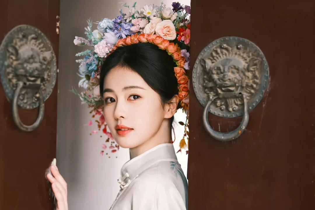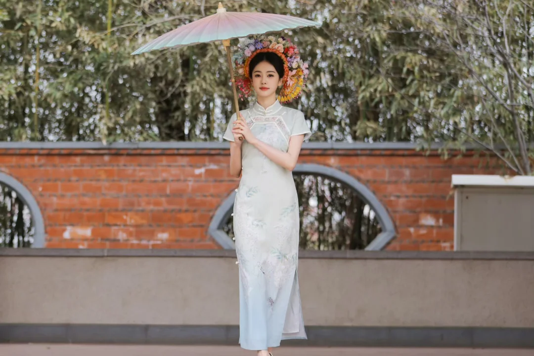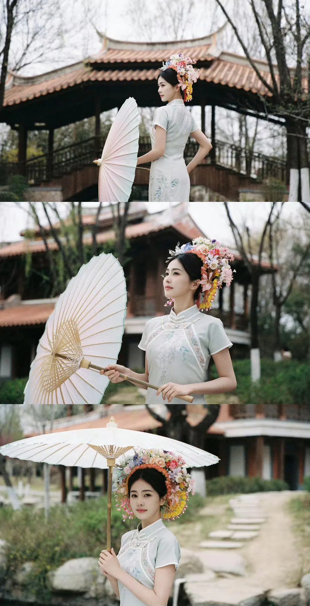 📷簪花写真参考 到泉州拍簪花写真纠结选什么服装颜色?如果不想要千篇一律的红色,不妨参考白鹿的造型。这一身浅天青色衬托出了她典雅温润的气质,而且和各种背景都搭得很协调。头顶的“富贵花”簪花色彩浓烈饱满,遵循了“素衣配繁花”的传统搭配原则。道具方面还融入了纸鸢、伞等元素,进一步丰富了画面的意境和动感。 摄影师:吃吃吃子