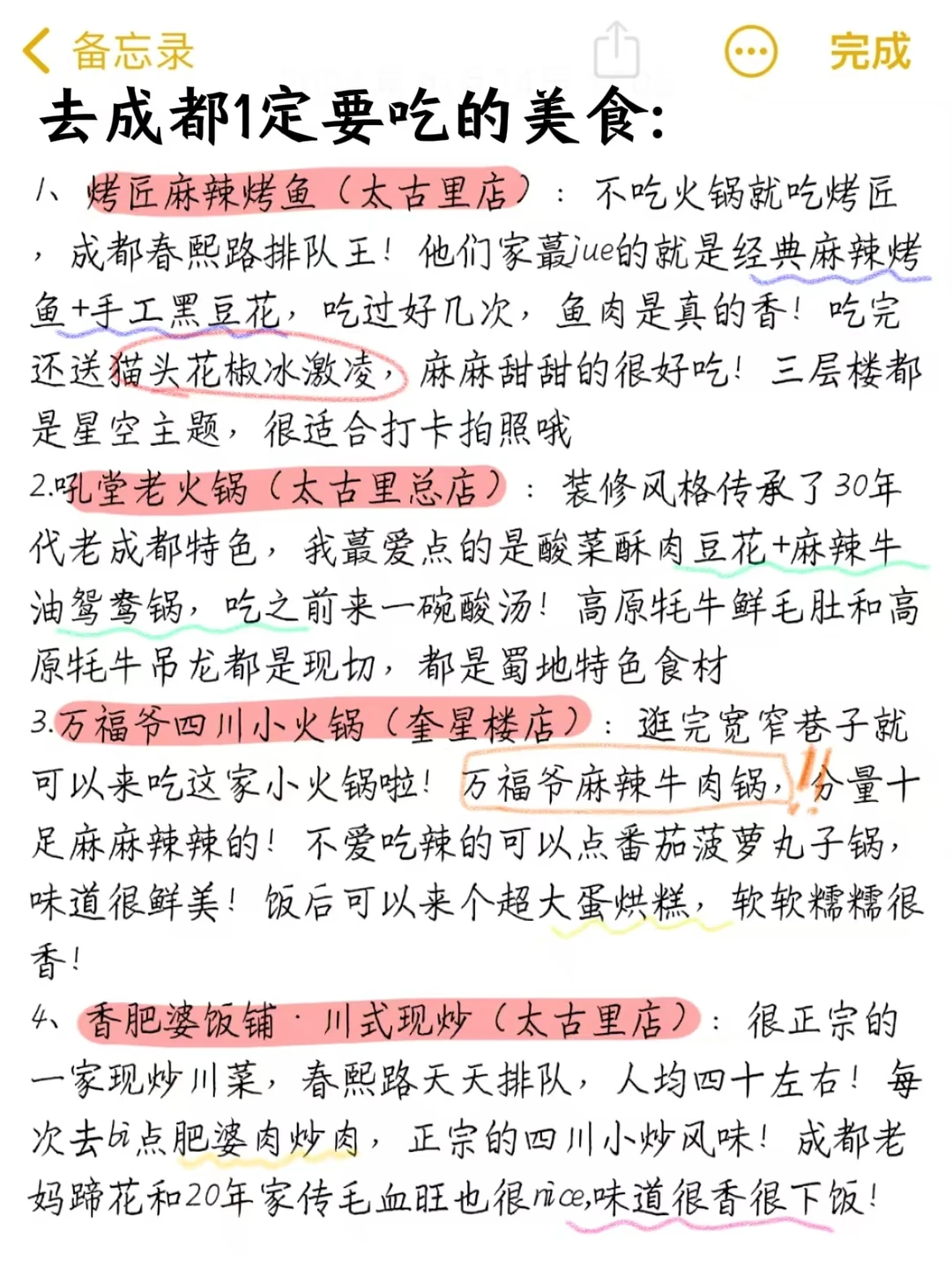 最近来成都的小伙伴们注意啦,成都的坑是真的很多💣一不注意就会踩雷。作为一个成都土著人,专门把要避雷的地道给大家整理出来了! - ⭕成都天气多变,带把伞在身边,现在早晚温差也很大,记得带外套 ⭕机场车站门口的黑车千万别坐,又坑又贵 ⭕别在景区买特产,专坑外地游客 - 💞值得吃的美食: 烤匠麻辣烤鱼(太古里店) 吼堂老火锅(太古里总店) 万福爷四川小火锅(奎星楼店) 香肥婆饭铺·川式现炒(太古里店) - 做了功课后买的🎁,送朋友超喜欢! -