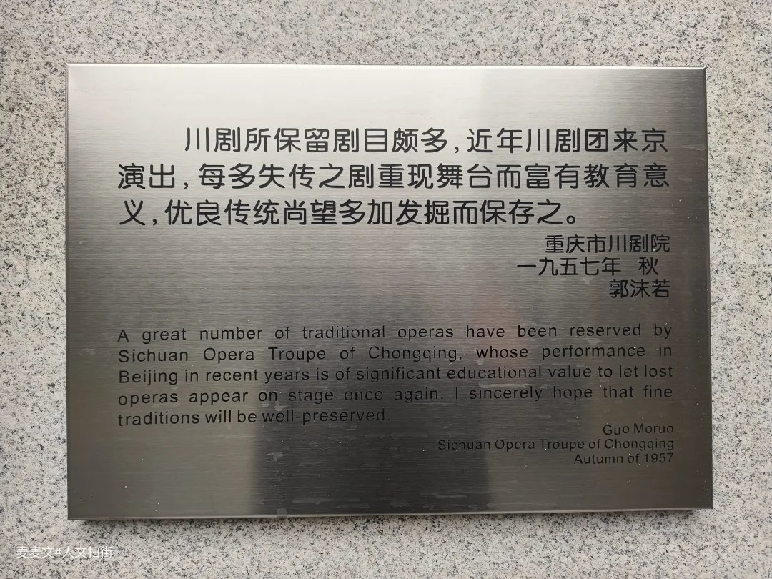 走进位于重庆市两江新区金开大道的川剧艺术中心,朱红立柱与鎏金雕梁的大戏院扑面而来。郭沫若1957年的题字刻在石墙上,静静诉说着“发掘保存川剧传统”的嘱托。