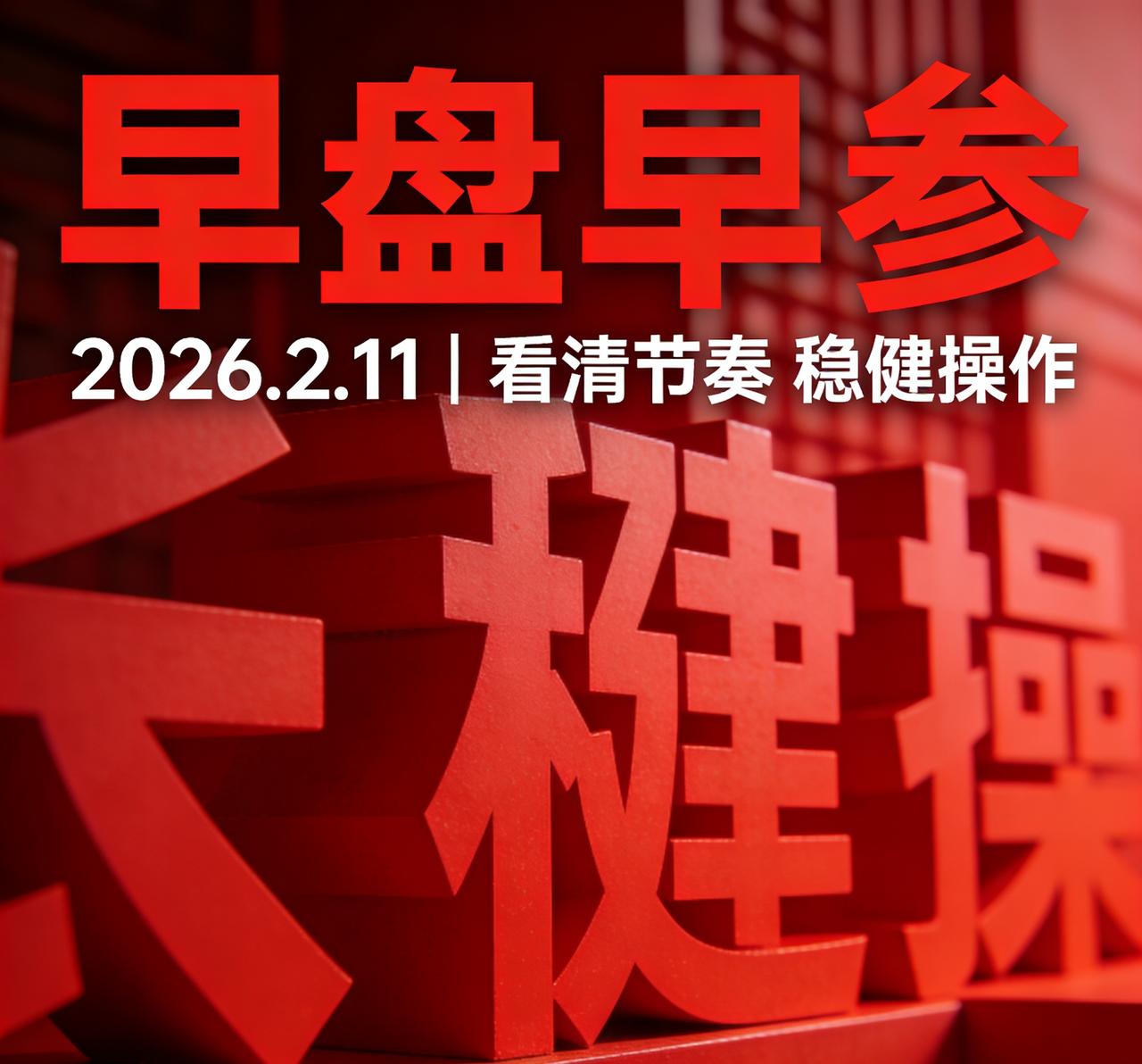 2026年2月11日 A股盘前早参:缩量震荡迎小年,聚焦算力+消费+高股息 亲爱的读者朋友,早上好☀️ 小年临近,市场整体以稳为主,节奏比方向更重要。早盘先看关键信号,再做应对,不追不躁,守住节奏就是赢。 一、昨日市场回顾(2月10日) 1. 核心指数表现 上证指数收报4128.37点,上涨0.13%,录得6连阳; 深成指、创业板指小幅收跌,两市成交额约7200亿元,较前一交易日缩量明显。 2. 板块与热点 AI算力、文化传媒板块领涨,成为市场结构性主线; 消费复苏相关板块表现分化,食品饮料、零售小幅回暖; 高股息、电力、银行等防御板块表现稳健,成为市场“压舱石”。 二、今日核心策略 1. 仓位建议:5-7成,轻仓过节,避免节前大幅波动带来的回撤风险。 2. 主线方向:AI算力、低空经济、消费复苏,关注政策催化与资金流向。 3. 防御配置:高股息、电力、银行打底,提升组合抗波动能力。 4. 风险规避:警惕高位减持、ST风险股,远离无业绩支撑的题材炒作。 三、今日重点关注事件 1. 国新办举行2026“乐购新春”春节特别活动新闻发布会,关注消费刺激政策。 2. 上海市政府发布《上海市国民经济和社会发展第十个五年规划纲要》,关注产业升级与区域发展机会。 3. 美联储官员讲话,重点关注货币政策表态,警惕外围市场波动传导。 四、风险提示 关注美股波动、地缘政治及春节前资金面变化,操作上以“稳”为主,不盲目追高,不轻易空仓。 免责声明:本文仅为市场客观信息整理与行业逻辑分析,不构成任何投资建议、操作指导或交易邀约。市场有风险,投资需谨慎,据此操作风险自担。