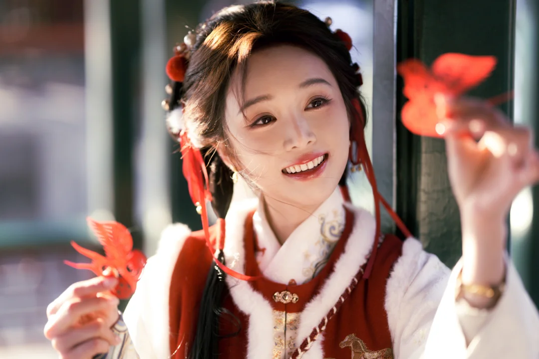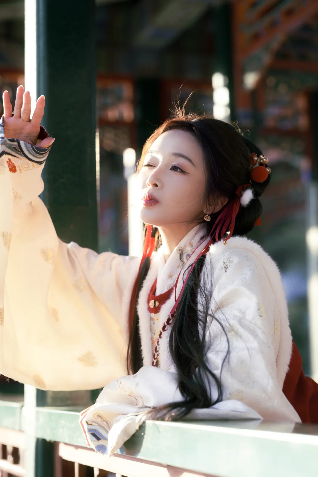 📷新年汉服写真参考 吴宣仪在这组照片中好软萌啊!她以往的造型多以甜酷风为主,在甜美底调中融入酷飒或辣妹元素。而在这组新年写真中,她却是完完全全的甜。汉服、毛茸领和双丫髻发型,把她气质中柔软灵动的一面彻底释放,再配上俏皮可爱的表情,整个就像一只雪地里欢脱的小白兔 摄影师:凭风以西