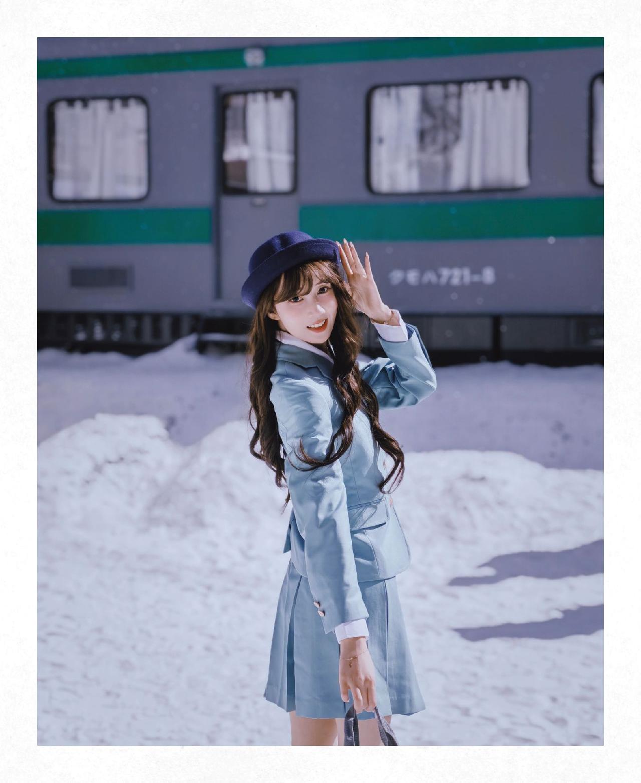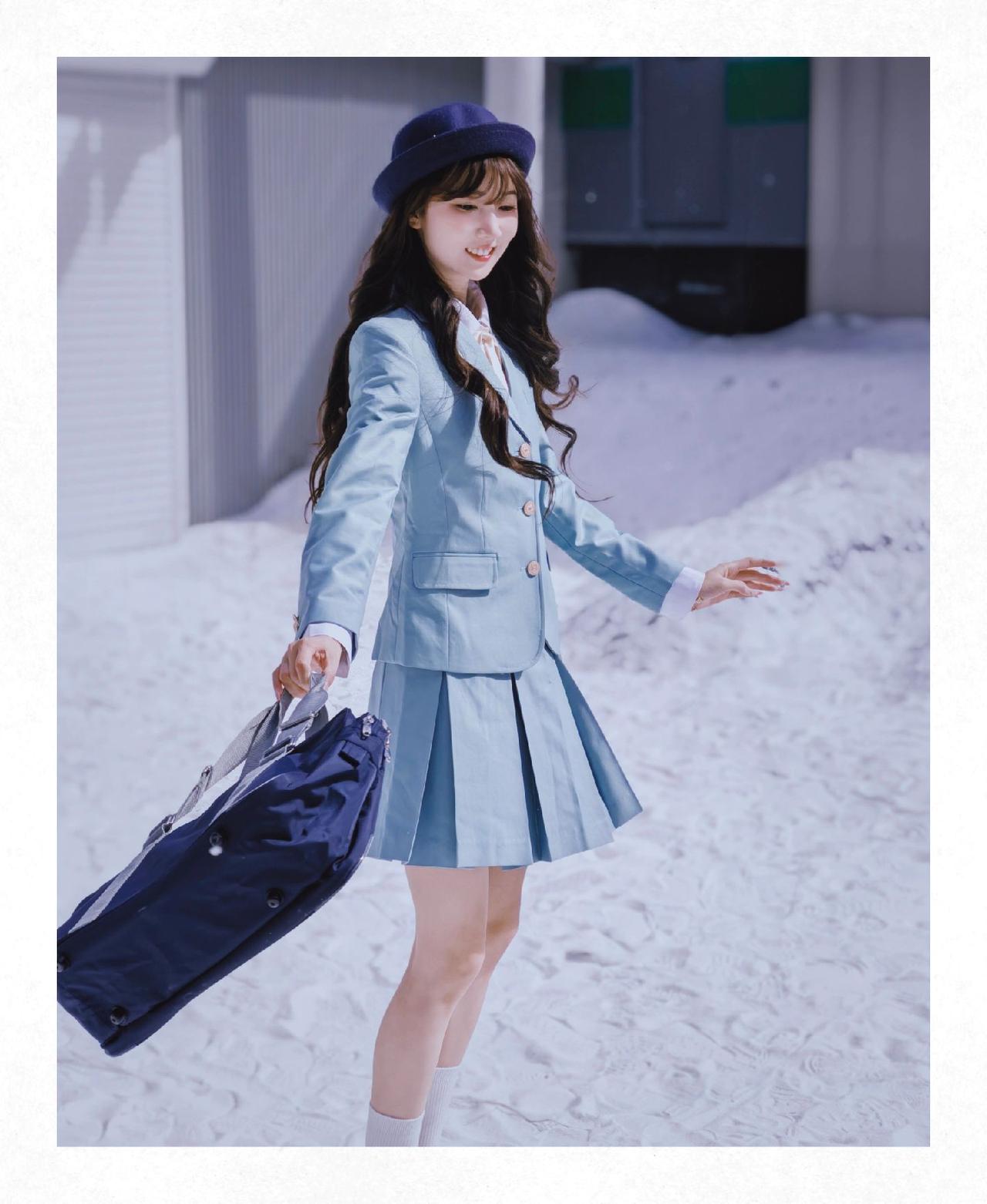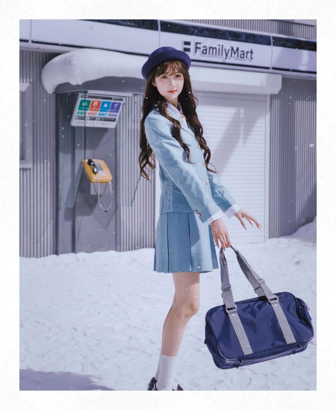 和小丝老师来了一场雪地JK拍摄,不得不说荣耀500这个撕拉片滤镜很适合这个场景荣耀500 雪天拍照