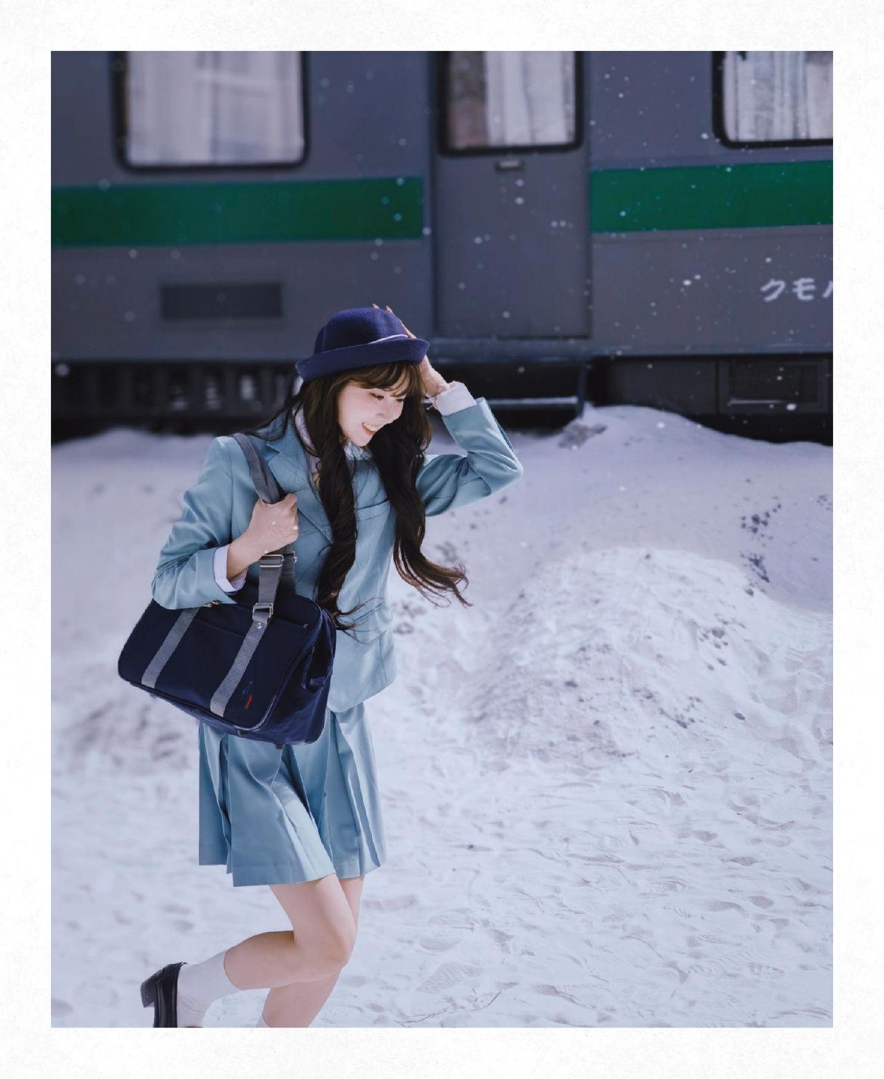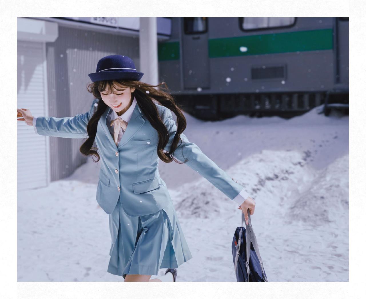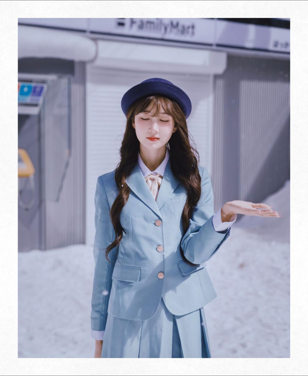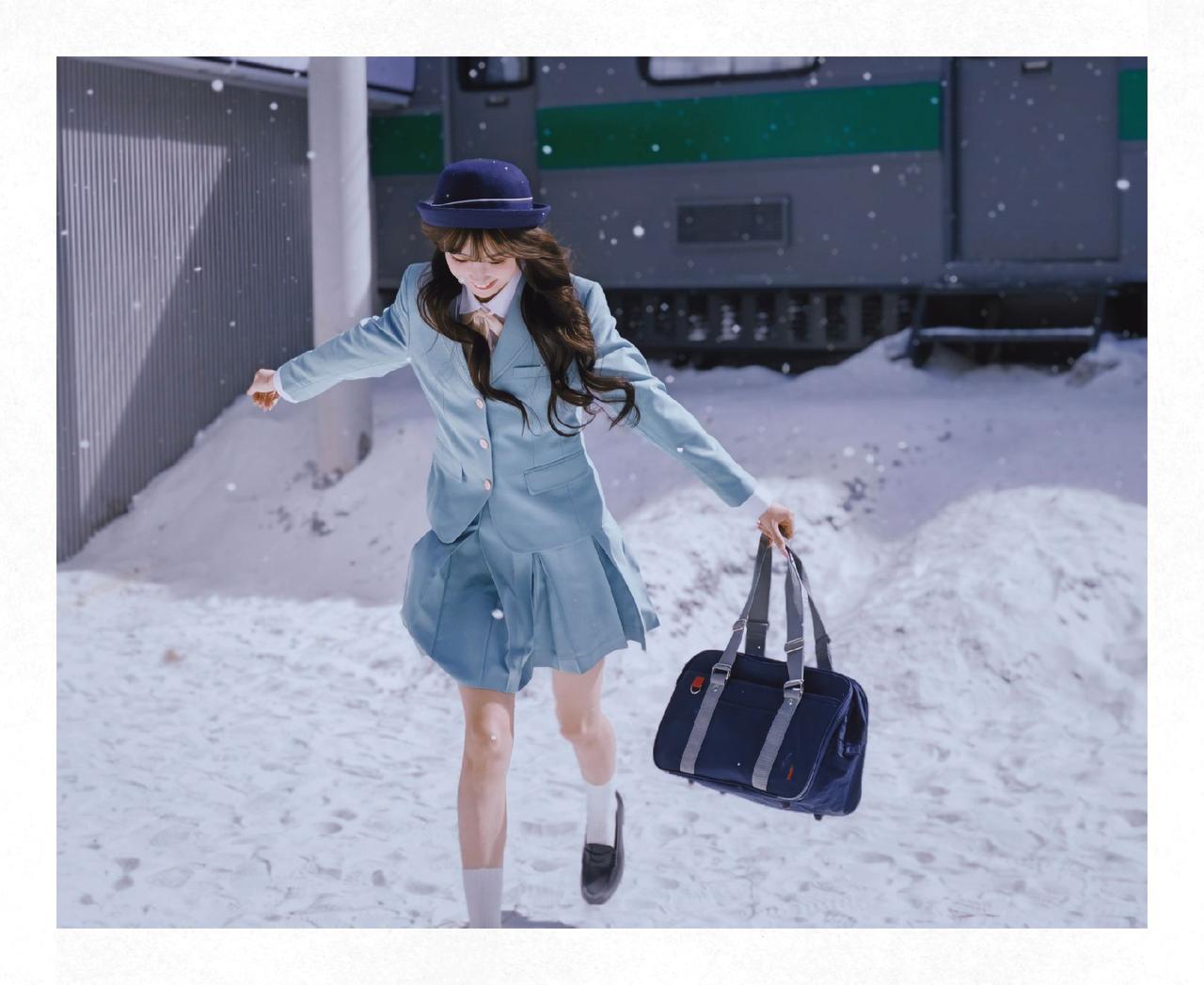 和小丝老师来了一场雪地JK拍摄,不得不说荣耀500这个撕拉片滤镜很适合这个场景荣