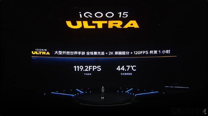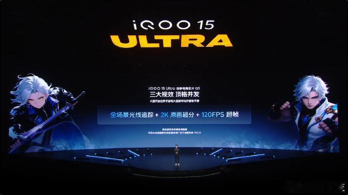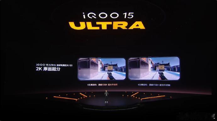 全场景光线追踪+2K原画超分+120FPS超帧,iQOO 15 Ultra基本上是顶格支持了,除了被大家吐槽没用的165Hz之外。 当然,没有提到具体有哪些游戏,而是在下面注明,我觉得完全可以在PPT下面把游戏图标放出来,除非特别多列不出来,可以再小字提醒咨询客服。