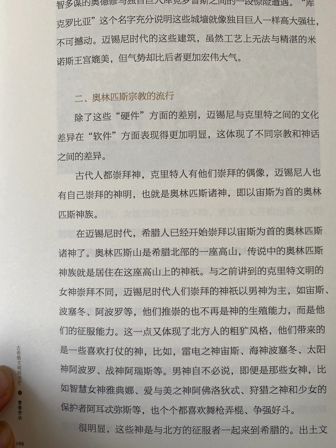 从克里特文明到迈锡尼文明;从奥林匹斯宗教到奥林匹亚竞技会;从希腊雕塑、建筑、绘画到三位一体的帕特农神庙;从希腊的抒情诗、悲喜剧到哲学……这套书涵盖了我所有想了解的一切。