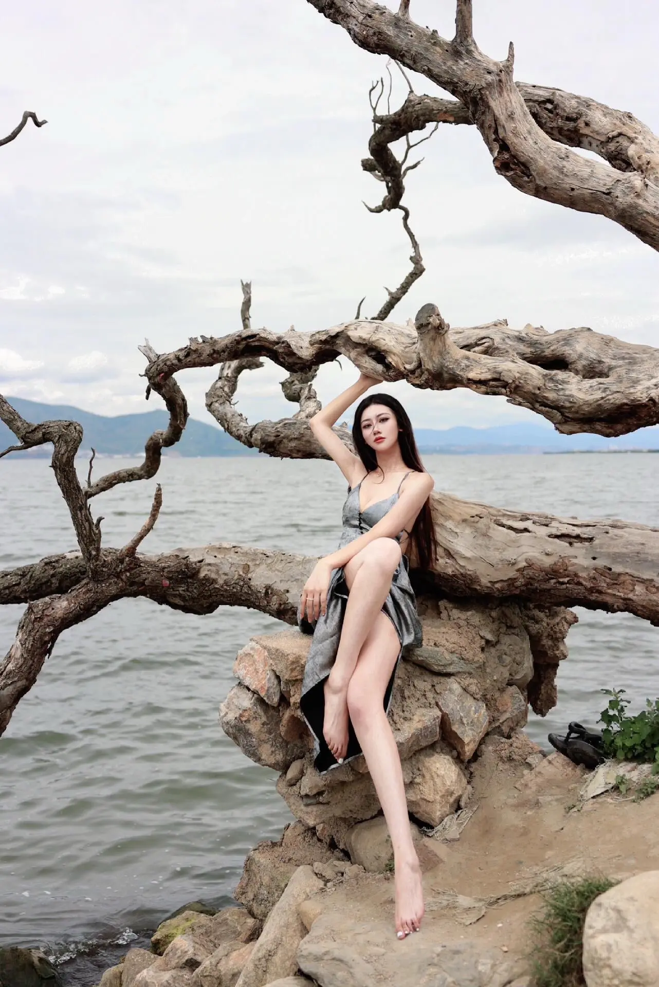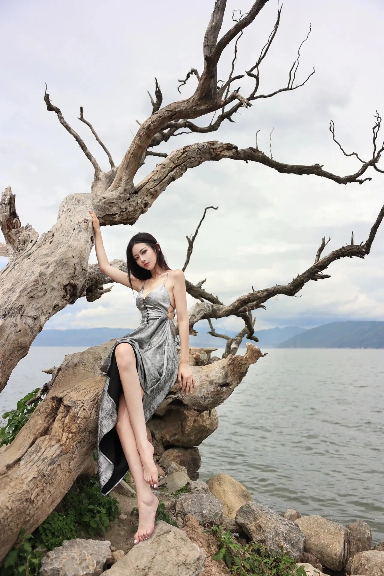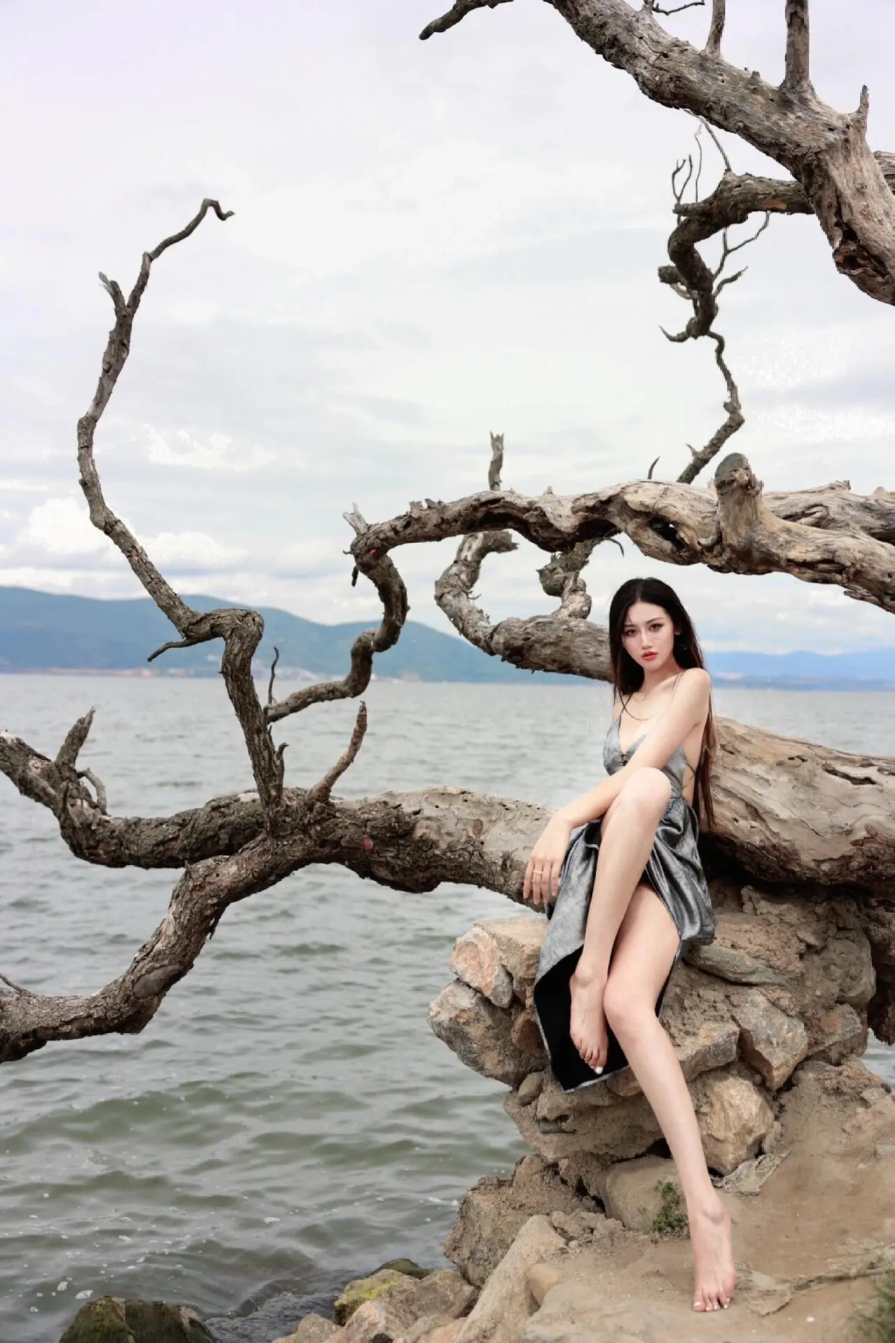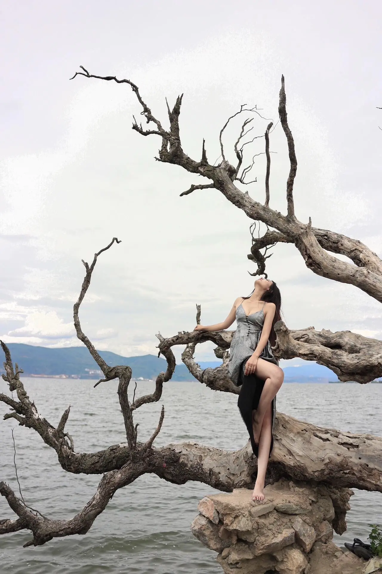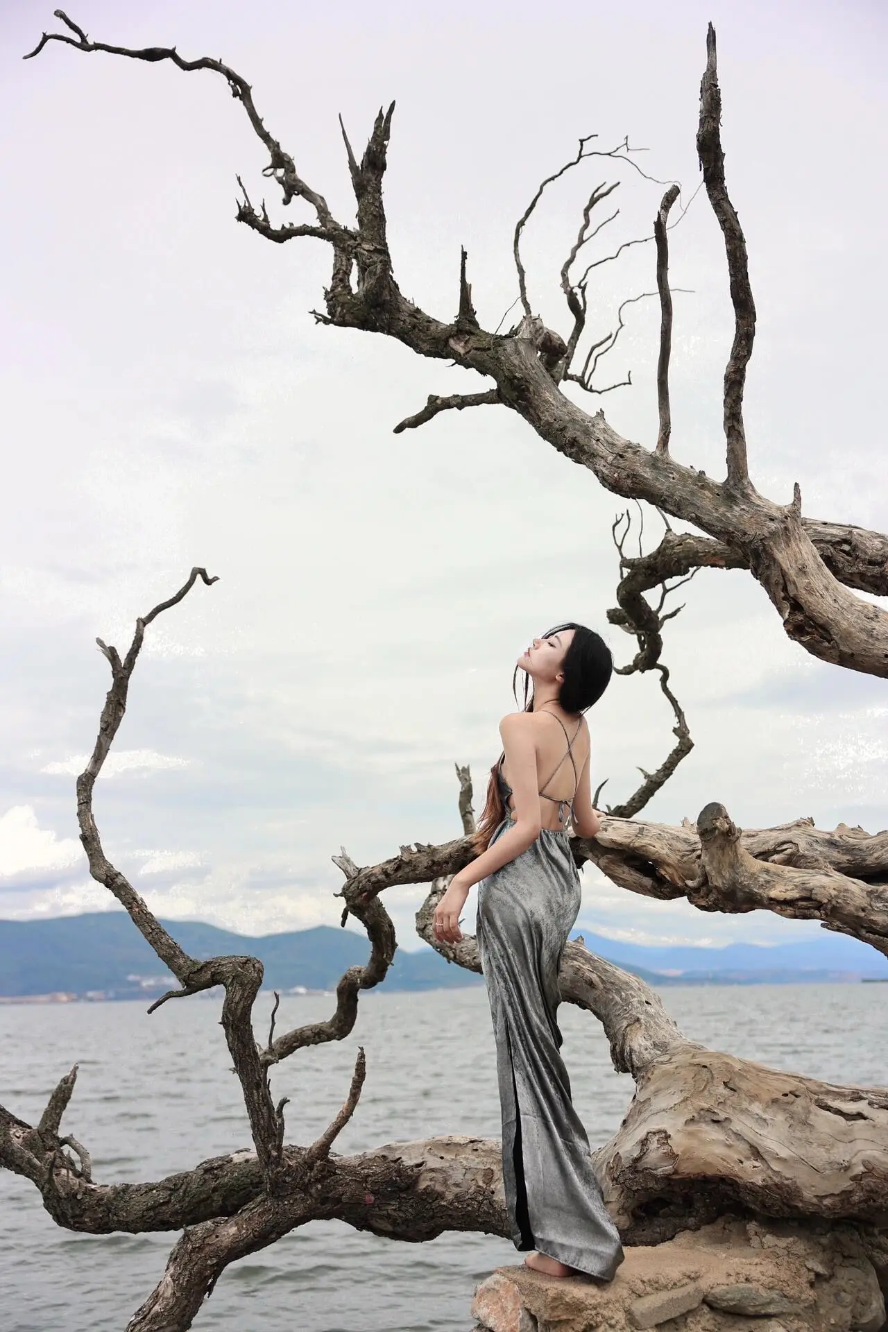 🌊 枯树与海,温柔与倔强。一半是枯萎的过往,一半是辽阔的远方 当裙摆掠过礁石,风里都是故事的回响