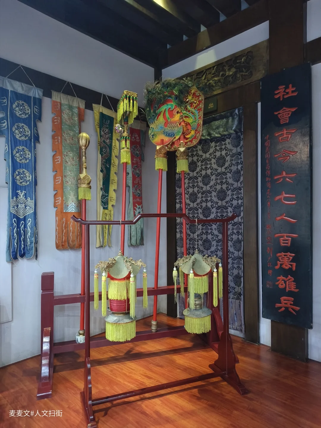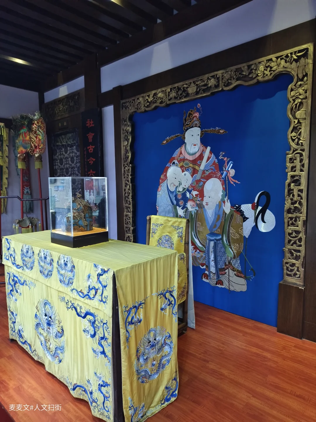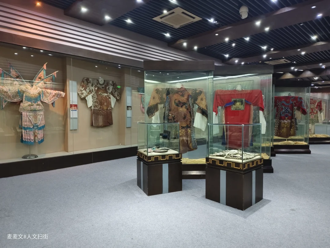 馆内四大展区藏着3747件/套珍品,二两黄金绣制的黑蟒袍尤为夺目,蜀绣苏绣交织的金龙在灯光下熠熠生辉。异地复建的明清古戏台全是原件,金漆木雕尽显往昔繁华,而“后台前置”设计让化妆、道具制作过程透明可见,趣味十足。