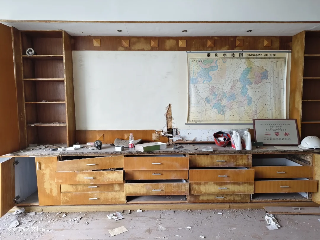 如今厂区内,大量遗留物品散落在各处。闲置的机器设备随意搁置,生锈的钢铁骨架像是被时间定格。一些仪表盘歪倒在一旁,玻璃破碎,指针停留在某个曾经忙碌的时刻。陈旧的电缆像藤蔓一样在地上和架子上缠绕,仿佛诉说着曾经热火朝天的生产场景。角落里还有颇旧的重庆发电厂工人工作服、安全帽,那是曾经在此辛勤劳作的人们留下的印记。