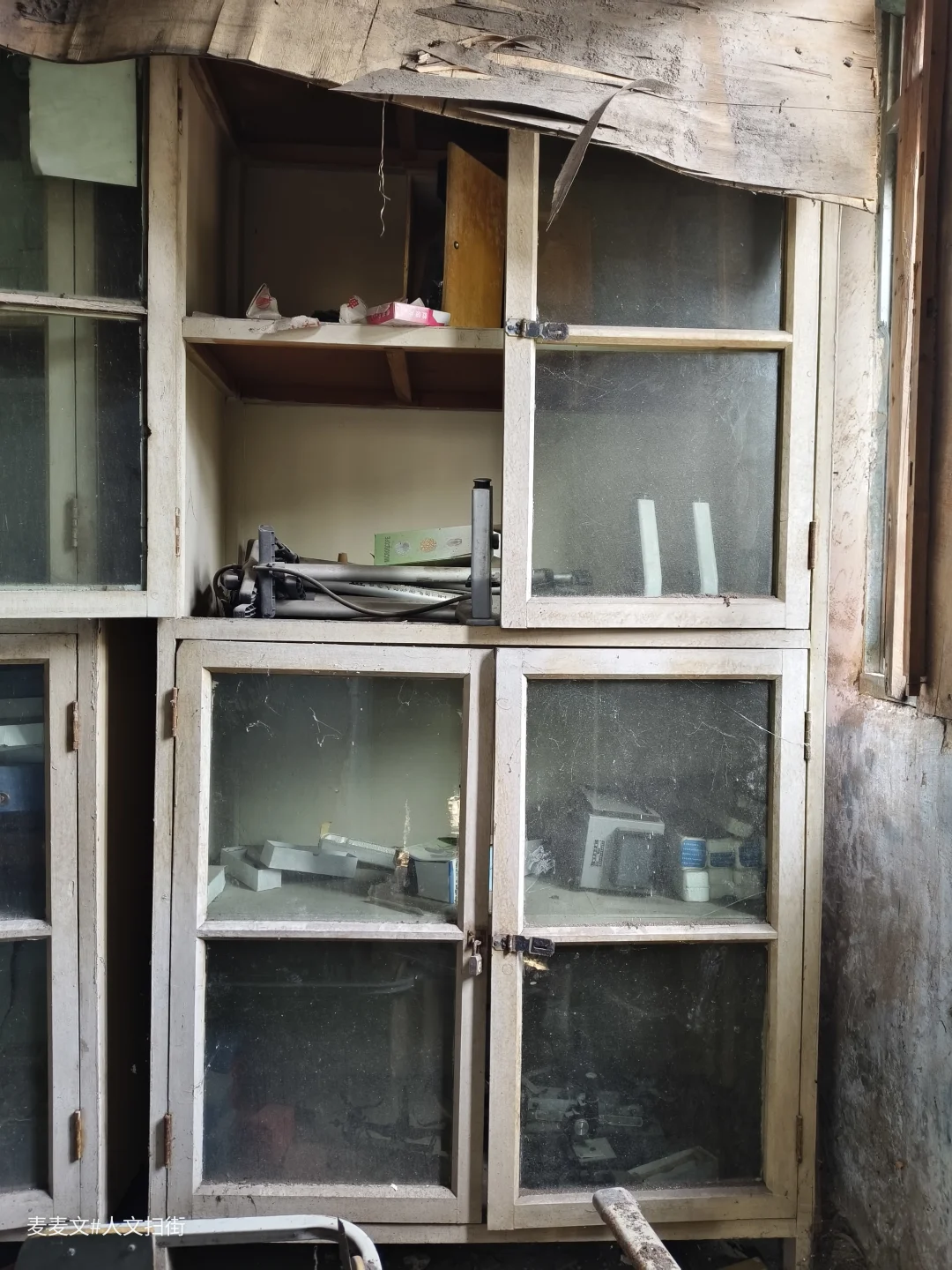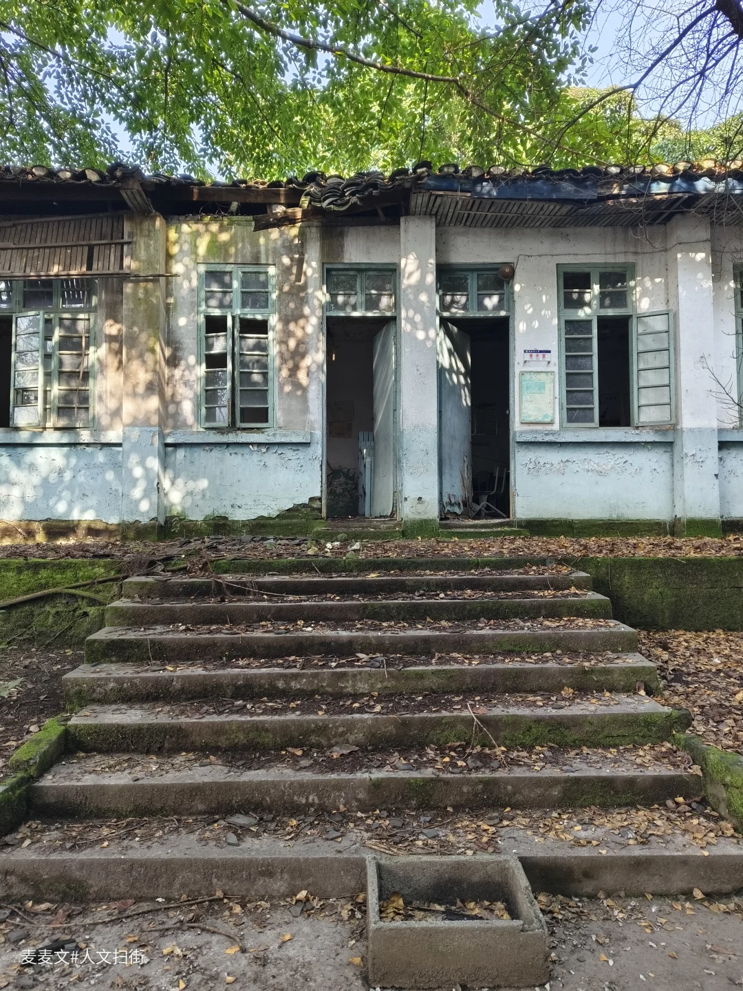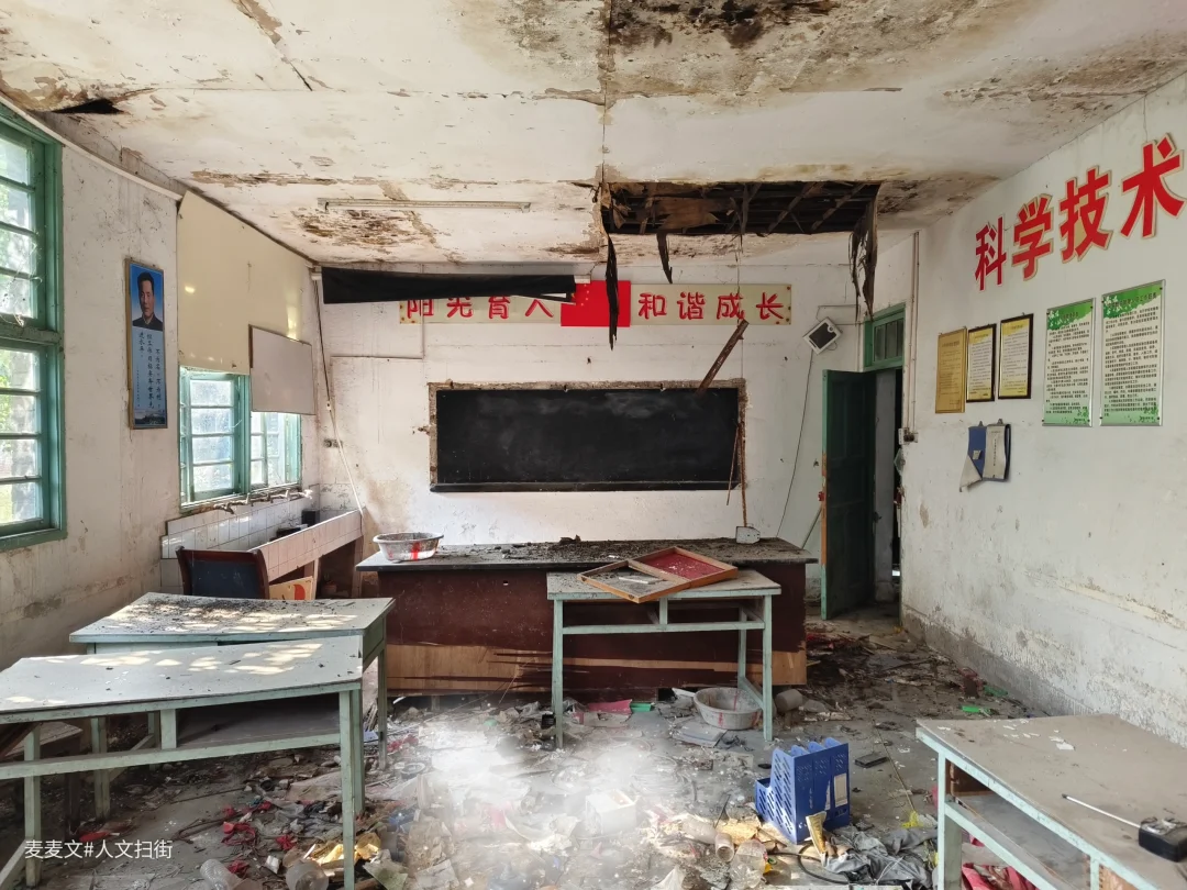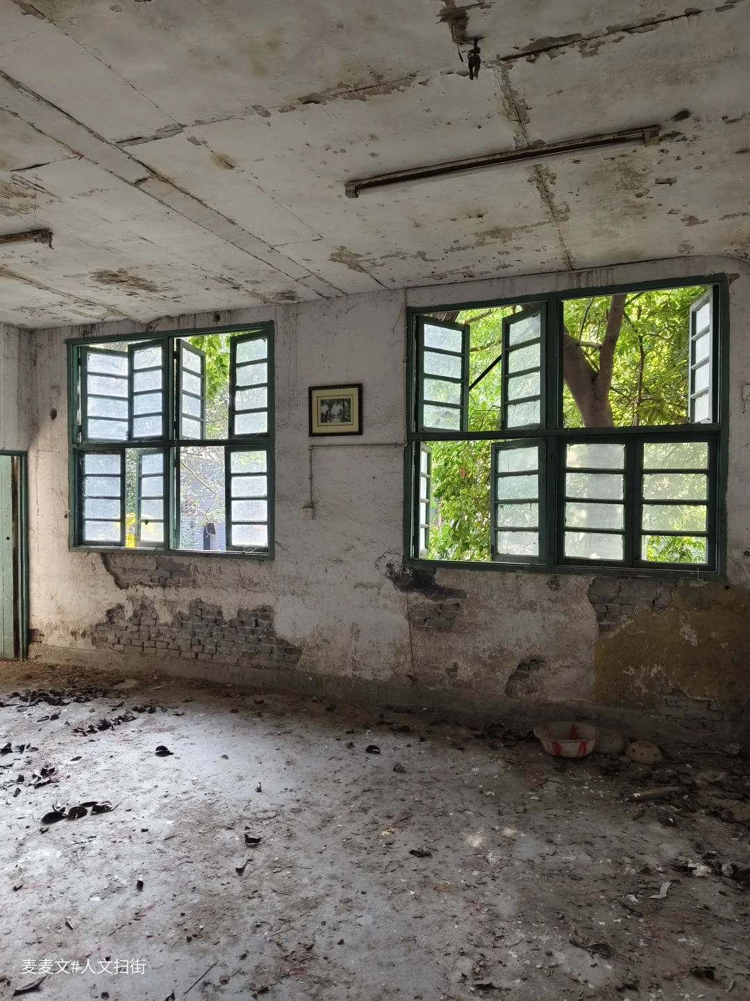 踏入原巴县县立25小学旧址,像闯入了一场被按下暂停键的童年。斑驳的墙皮裹着“阳光育人,和谐成长”的标语,绿色窗框还留着当年的油漆。光影洒在空荡荡的教室,黑板上的粉笔字依稀可辨,“学习园地”的彩色贴纸还贴在墙上,旧书架落满了灰尘。