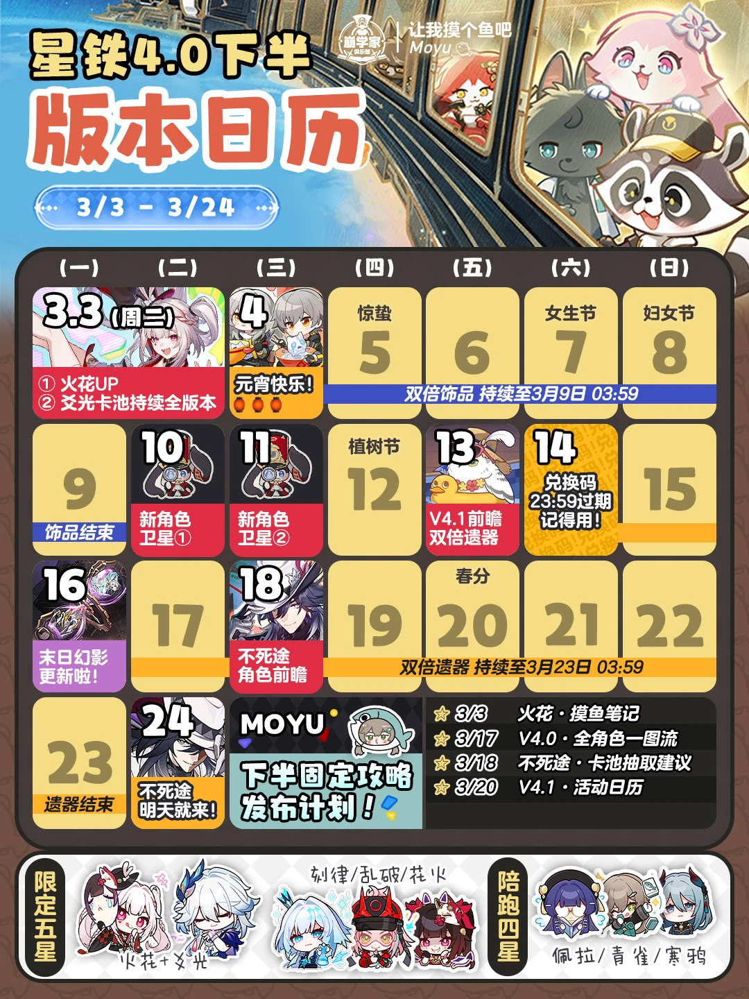 马上开新卡池了,帮大家总结了4.0整个版本的各种活动排期!