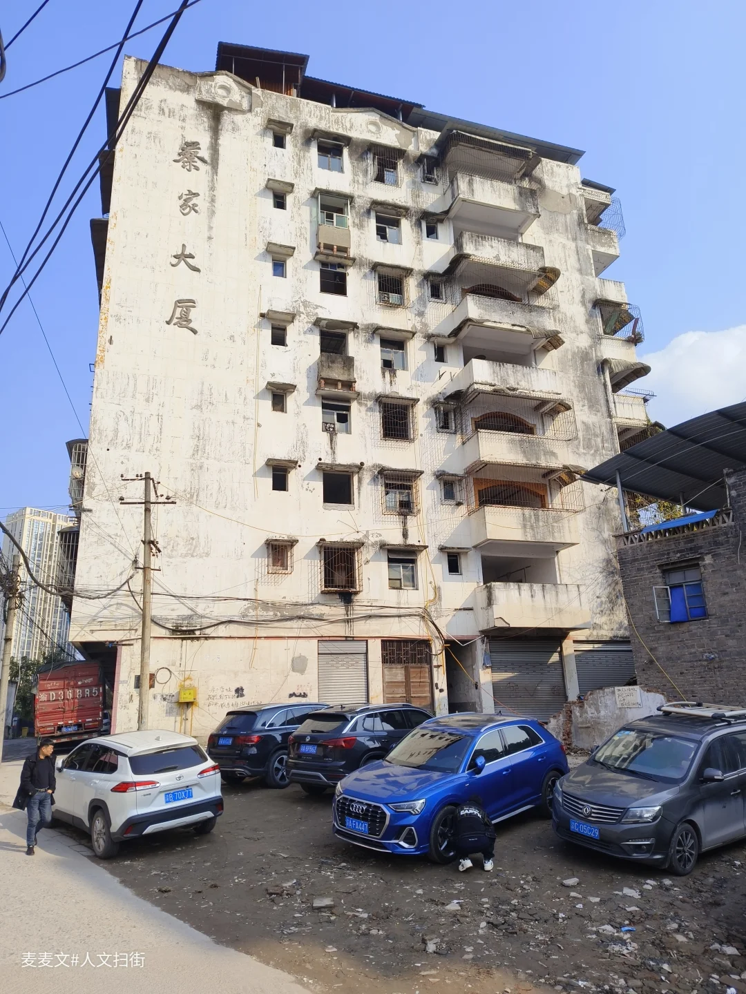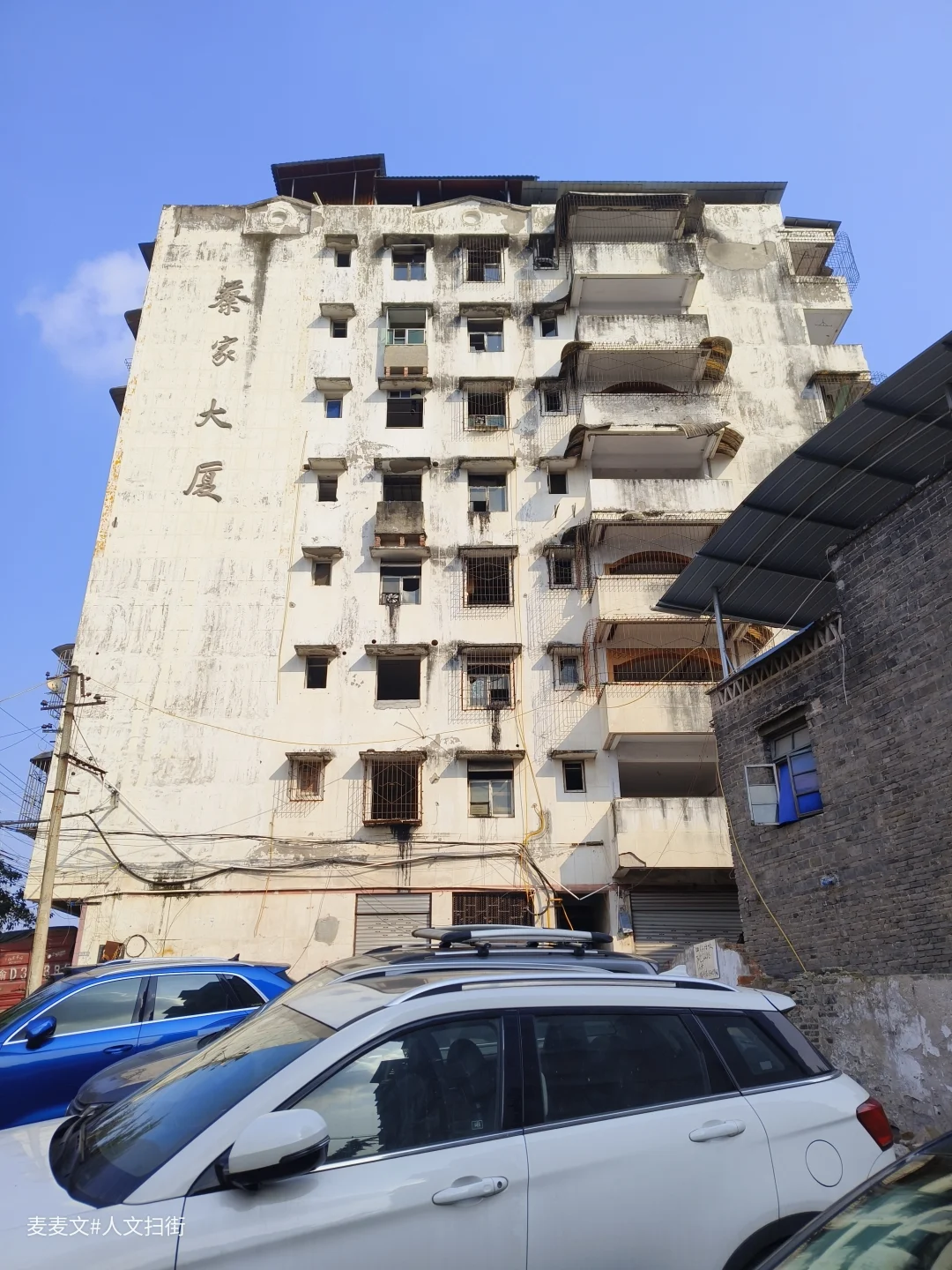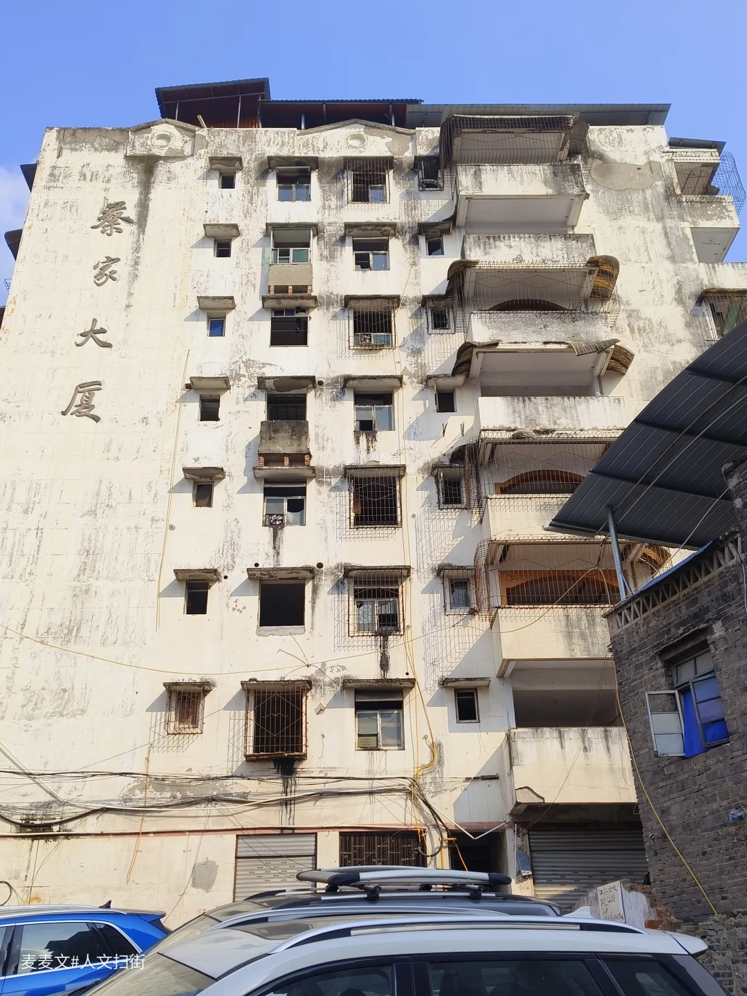 这栋斑驳的白色老楼,是北碚蔡家老街的千禧年“地标”——蔡家大厦。当年经济上行期,它是镇上最高的商住楼,白墙灰瓦、外露的铁栏杆,都是那个年代独有的审美。如今老楼空置,周围已是高楼林立的蔡家智慧新城。 蔡家大厦像一本摊开的旧书,封皮泛黄,却藏着老街最鲜活的烟火记忆。站在楼下,一边是千禧年的市井余温,一边是重庆两江新区的城市新篇,新旧碰撞间,蔡家的变迁尽收眼底。