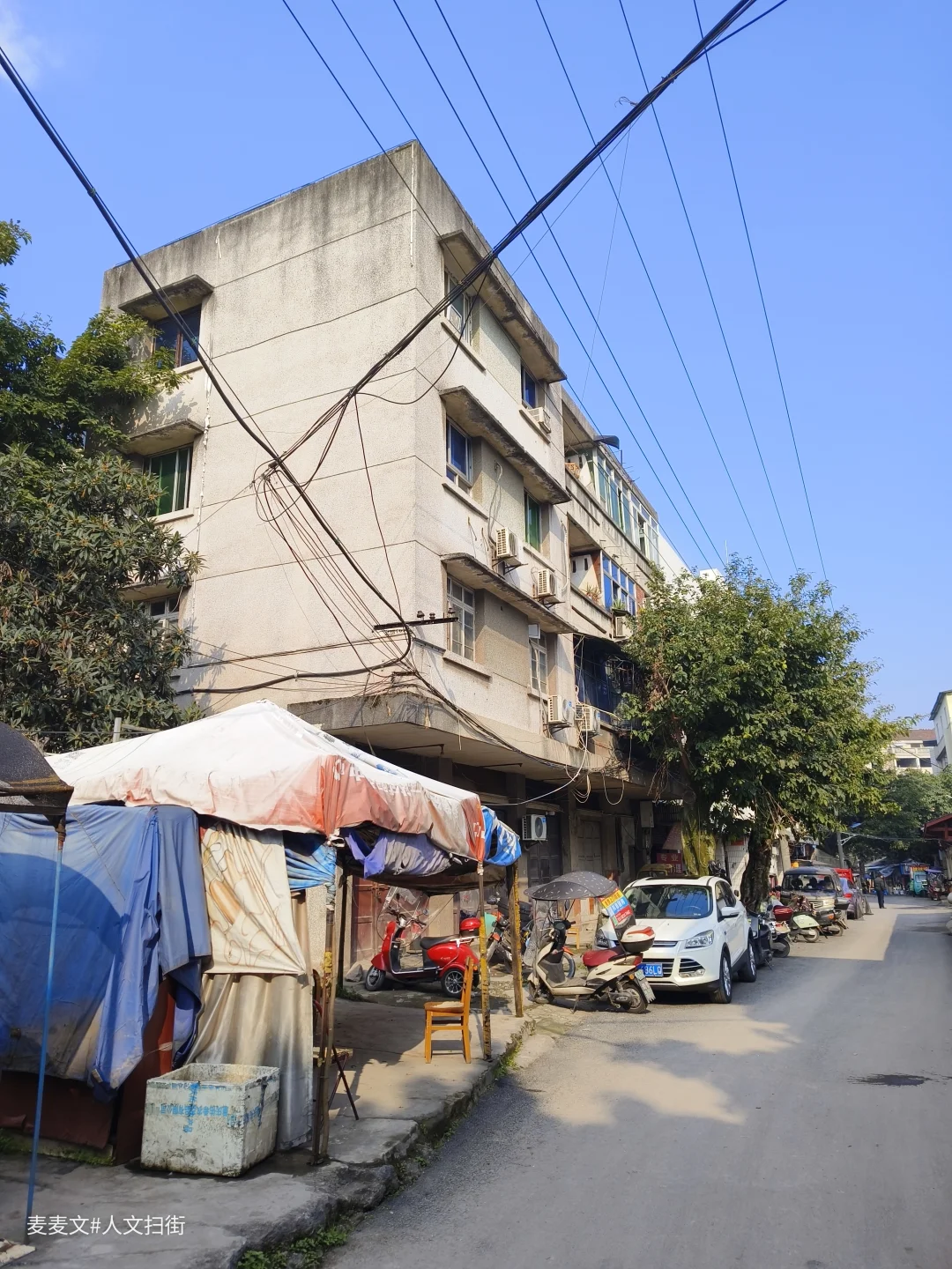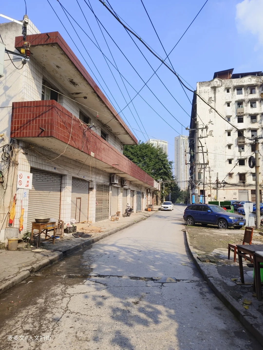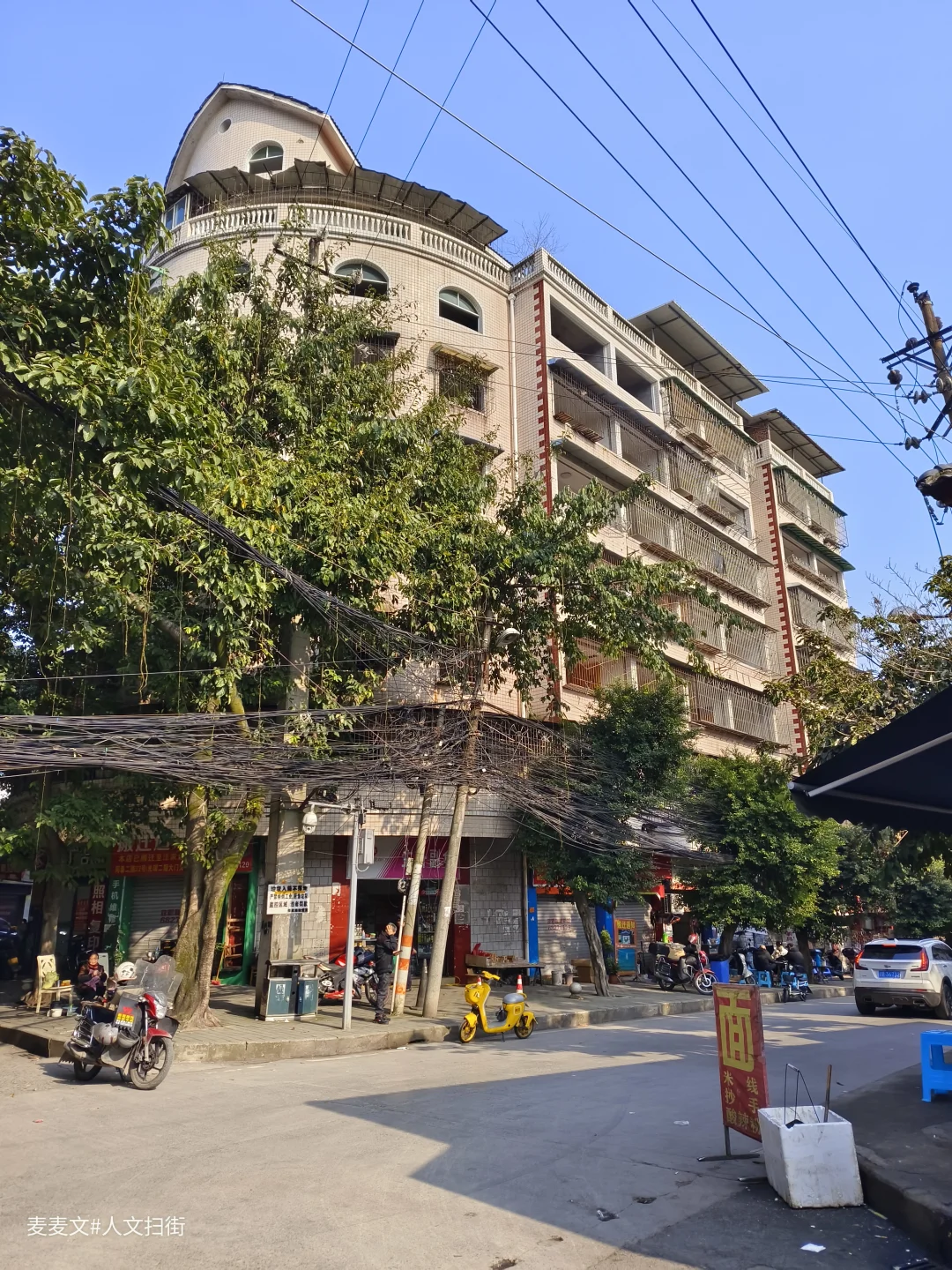 这栋斑驳的白色老楼,是北碚蔡家老街的千禧年“地标”——蔡家大厦。当年经济上行期,它是镇上最高的商住楼,白墙灰瓦、外露的铁栏杆,都是那个年代独有的审美。如今老楼空置,周围已是高楼林立的蔡家智慧新城。 蔡家大厦像一本摊开的旧书,封皮泛黄,却藏着老街最鲜活的烟火记忆。站在楼下,一边是千禧年的市井余温,一边是重庆两江新区的城市新篇,新旧碰撞间,蔡家的变迁尽收眼底。