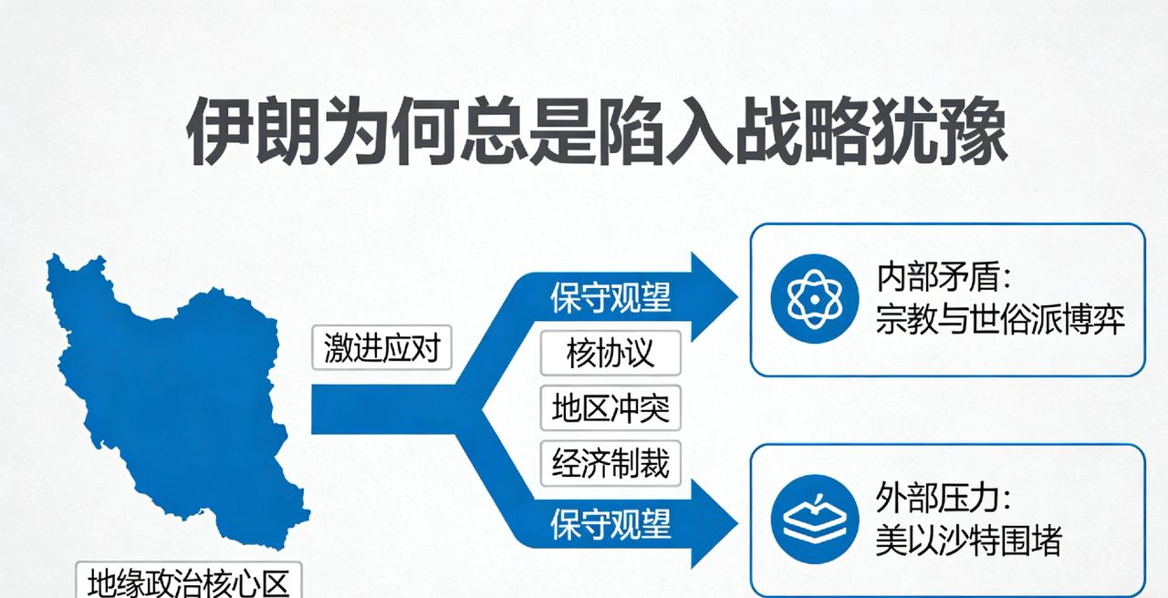 伊朗为何总是陷入战略犹豫 在中东地缘格局中,伊朗的对外策略时常呈现出犹豫与摇摆,既难以彻底走向缓和,也不愿贸然升级对抗。这种战略选择并非主观软弱,而是由内部结构、外部压力与现实约束共同塑造的结果。 从内部来看,伊朗的决策体系存在明显的派系平衡特征。保守力量与务实力量在安全、外交、经济等议题上长期存在分歧,前者更强调意识形态与国家安全底线,后者更关注民生改善与国际接触。最高领袖虽拥有最终决定权,但重大政策需要兼顾各方立场,难以形成快速、统一的行动指令,这使得伊朗在关键节点容易出现迟疑与反复。 经济层面的脆弱性,是制约伊朗战略选择的现实瓶颈。长期的国际制裁严重影响伊朗的石油出口、金融往来与民生经济,国内通胀、就业等压力持续存在。经济基础的薄弱,让伊朗无法承担全面对抗带来的巨大成本,也无法完全放弃与外部世界沟通的可能,只能在强硬与妥协之间不断试探。 外部安全环境同样加剧了伊朗的战略犹豫。美国的军事威慑、制裁压力,以及地区对手的持续制衡,使伊朗始终处于高度警惕状态。伊朗既希望维护自身在地区的影响力,又担心过度行动引发直接冲突,危及政权稳定与国家安全。 此外,历史与地缘教训也让伊朗领导层倾向于谨慎行事。在复杂的中东博弈中,任何激进选择都可能带来不可控的后果。因此,伊朗更愿意采取有限度、低风险的策略,而非孤注一掷。 总体而言,伊朗的战略犹豫,是内部平衡、经济约束、外部压力与安全优先原则共同作用的产物。在多重矛盾的拉扯下,谨慎权衡成为其长期的战略常态。