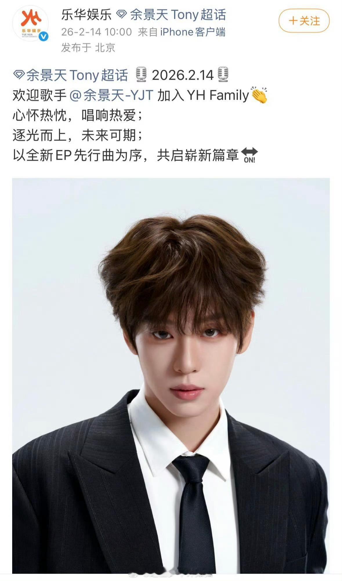 余景天官宣加入乐华后首支单曲 杜华亲自官宣,排面拉满。余景天同步上线新歌《Right Here》,节奏轻快,旋律洗脑,歌词里那句“I‘ll be right here”反复循环。是对粉丝说的,也是对自己说的。新阶段,新歌,新期待。