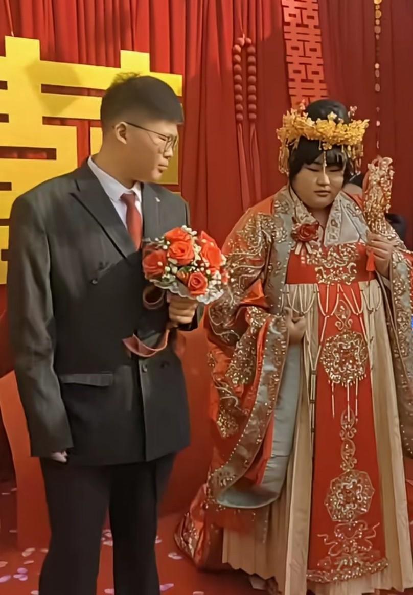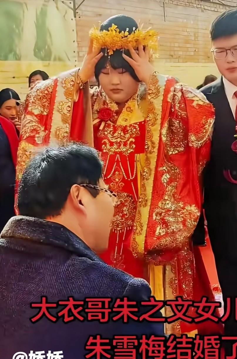 都说这孩子长的像贵妃,果不其然。人家大衣哥也是有名望的,生的女儿也是公主命。普通人家嫁女儿没人关注,人家大衣哥的女儿就是不一样。朱雪梅凤冠霞帔,像个有钱人家的大小姐。还拿着一把贵妃扇,半遮半掩真是千娇百媚。