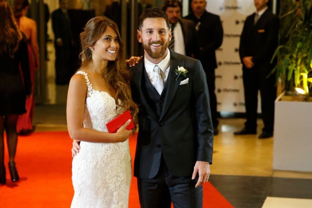 梅西 2012年小梅与安妞一同出席伊涅斯塔的婚礼,一直紧紧地牵着彼此的手~体育