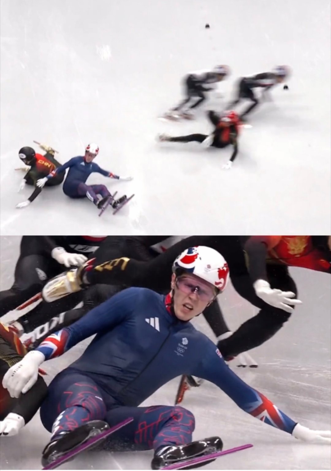 孙龙刘少昂被撞倒无法重赛该怎么描述1500决赛的心情!米兰冬奥短道速滑男子1500米A组决赛,九人的决赛非常拥挤,想到了局面混乱,没想到我们两位运动员被都被连累!熬大夜都要被气疯了! 孙龙、刘少昂开局两人跟滑稳健,刘少昂原本在第九,刚刚努力追上就发生意外!英国选手特雷西犯规,带倒刘少昂,同时带倒孙龙,孙龙摔倒后膝盖不适,直接流血,未能完赛;刘少昂迅速起身继续滑行,但已大幅落后,最终:刘少昂第7名,孙龙未完赛第8名英国选手被判犯规无成绩,你就说怎么赔!! 两人都拼到了最后,尤其孙龙,半决赛最后一圈连续超车、小组第二晋级,状态火热,如果没有被绊倒... 无论如何,都是英雄!!虽败犹荣!!希望孙龙没有大碍! v观冬奥会全民聊冬奥
