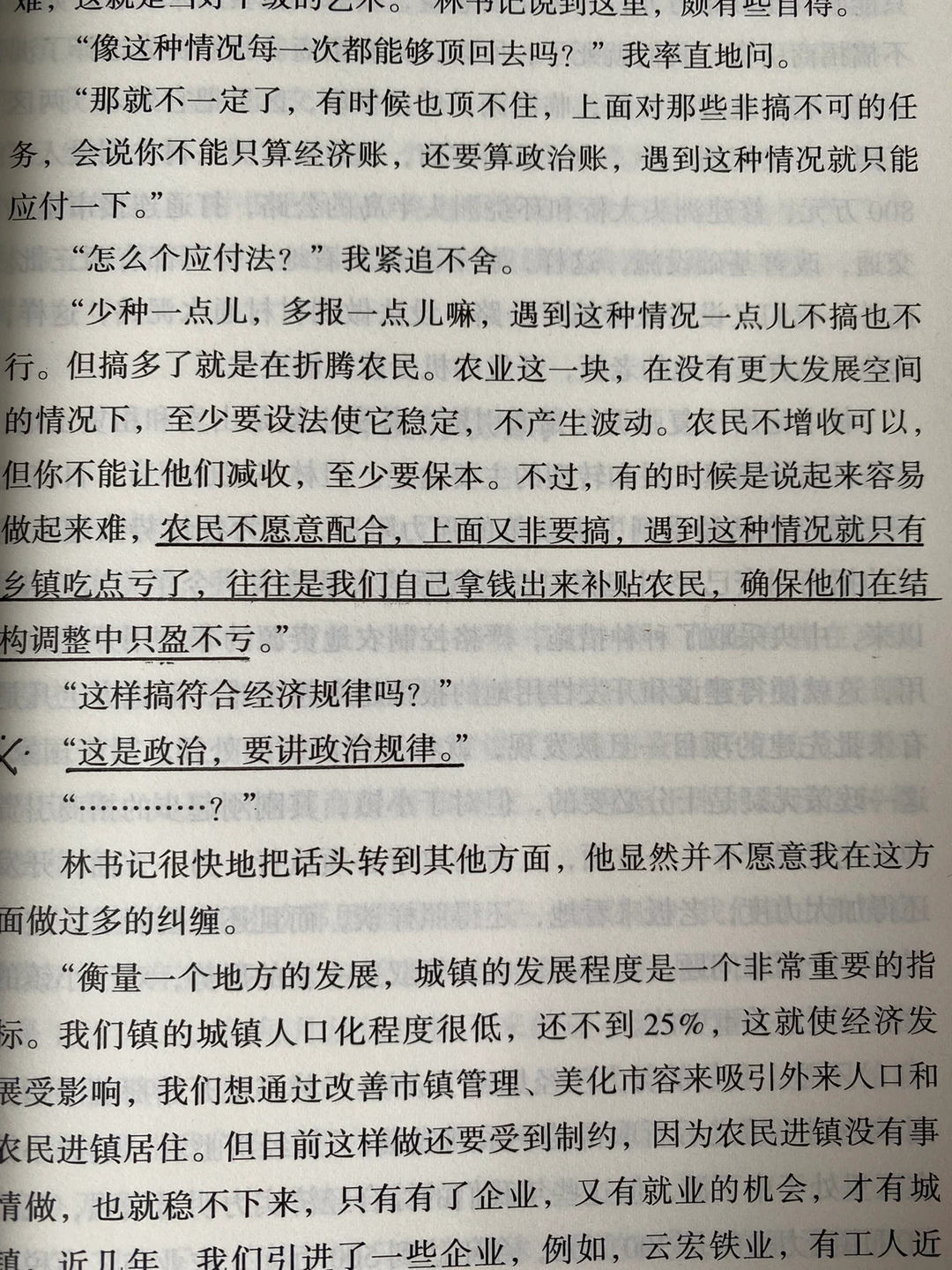 书中对基层政府,尤其是基层官员的描写特别有意思,首先他们本身就是“民”,站在国家角度又却是“官”,不断地进行政策制度落实和人情世故的处事可谓是一场真正博弈