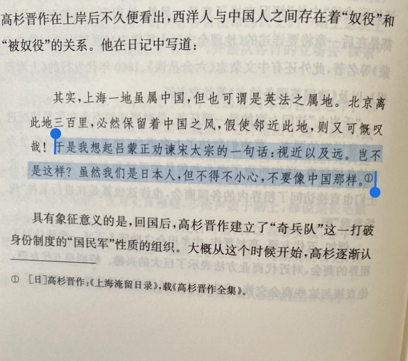 日本人高杉晋作甚至直接发现了西洋人与中国人之间存在的“努役”和“被奴一”的关系,还在日记中写下了振聋发聩的话语