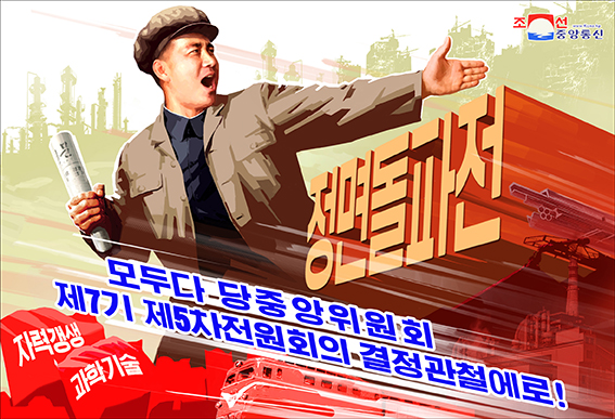 朝鲜宣传画:让我们贯彻落实党的七届五中全会决议!